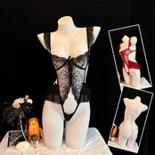 SENMHS セクシー ランジェリー コスプレ キャミソール レオタード ベビードール スケスケ シースルー エッチ エロ 下着 過激 貧乳 かわいい ロリータ ボディコン オープンクロッチ 部屋着 ルームウェア 大人 コスチューム レディース ホワイト ブラック レッドdme8640