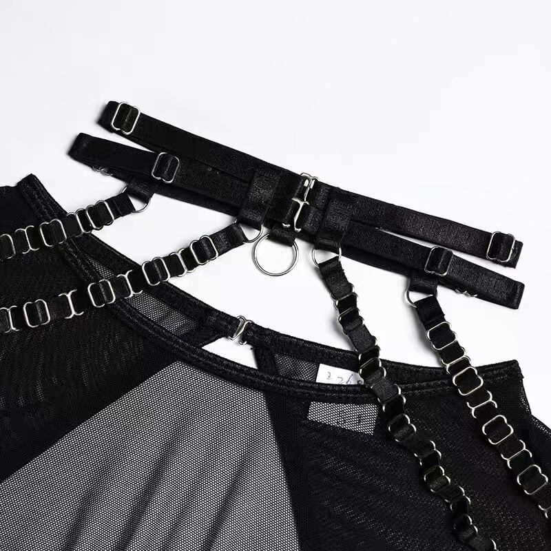 セット内容:帽子+トップス+チョーカー+ベルト+Tバック+手袋+ストッキング+ニップレス(8点セット)