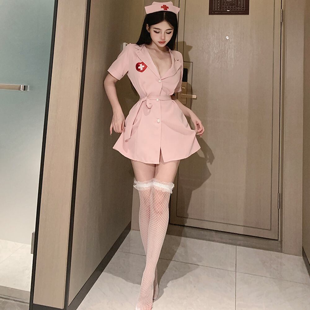 SENMHS ナース コスプレ エロ ナース服 看護婦天使 セクシー 過激 エッチ な えろい 可愛い ランジェリー 下着 コスチューム ワンピース 可愛い 萌え 制服 レディース 衣装 仮装 フリーサイズ ピンクwy1969