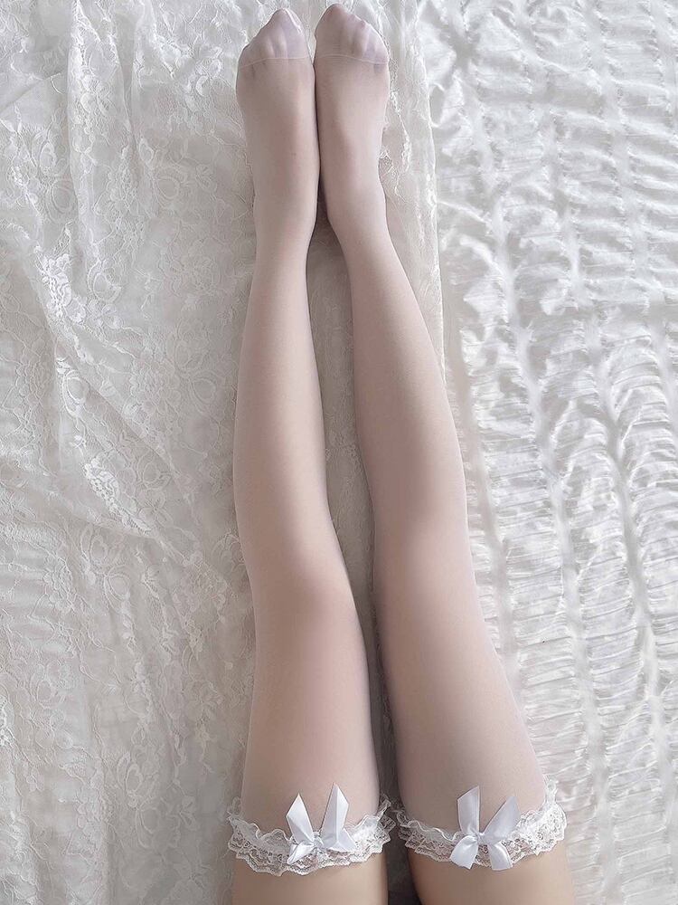 SENMHS 白 ニーハイ ストッキング コスチューム コスプレ ロリ系 コスチューム用小物 レディース バーニーソックス かわいい 美脚 1足セット ソックス ハイソックス 無地 靴下4116