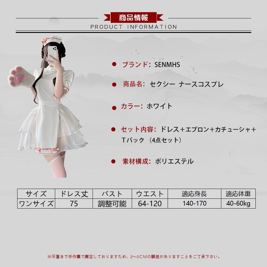 SENMHS ナース コスプレ セクシー エッチ エロ ナース服 制服 ボンデージ 看護婦 nurse 情趣 調教 エッチ な 萌え ミニ丈スカート ランジェリー コスチューム レディース ハロウィン 仮装 衣装 撮影会 ホワイト8591