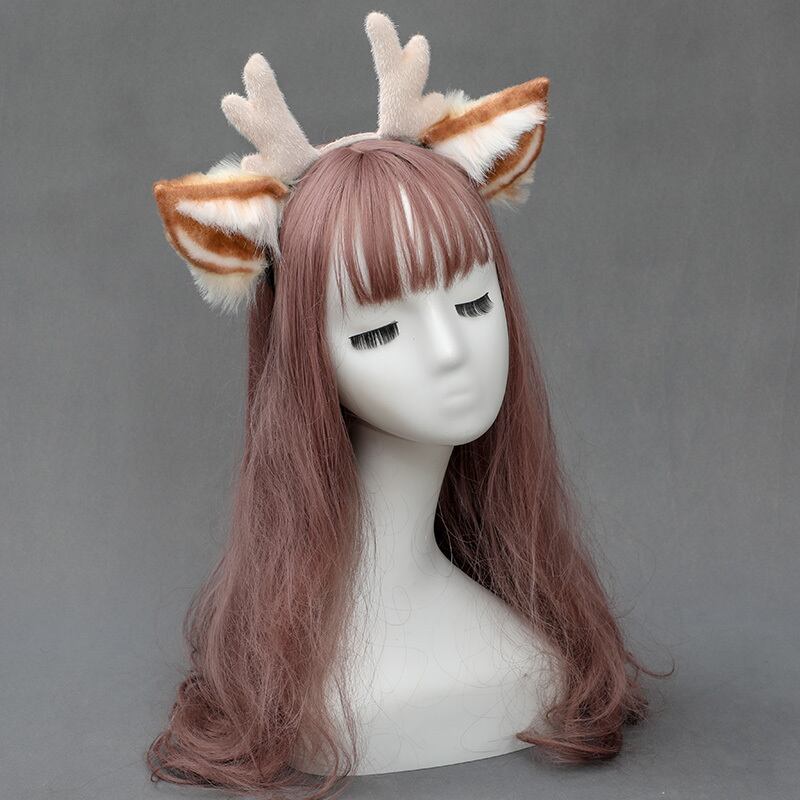 SENMHS トナカイ 耳 動物 アニマル 手作り モコモコ COSPLAY アクセサリー コスプレ コスチューム用 衣装 仮装 変装 文化祭 イベント パーティー 学園祭 お遊戯 ハロウィン クリスマス 男女兼用lf01beige