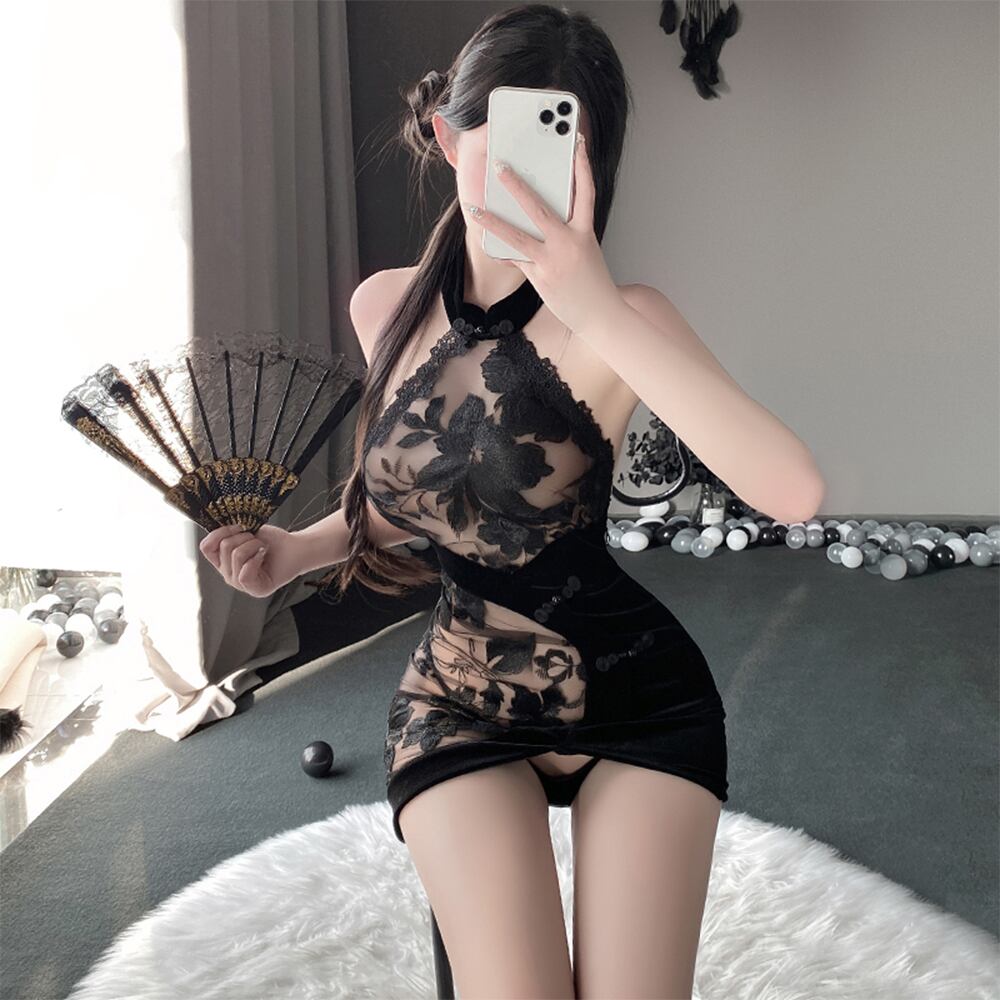 SENMHS セクシー コスプレ チャイナ エロ エッチ な えろい 過激 チャイナ服 チャイナドレス ランジェリー 貧乳 コスチューム ベビードール 下着 かわいい ミニ ドレスハロウィン ブラック8830