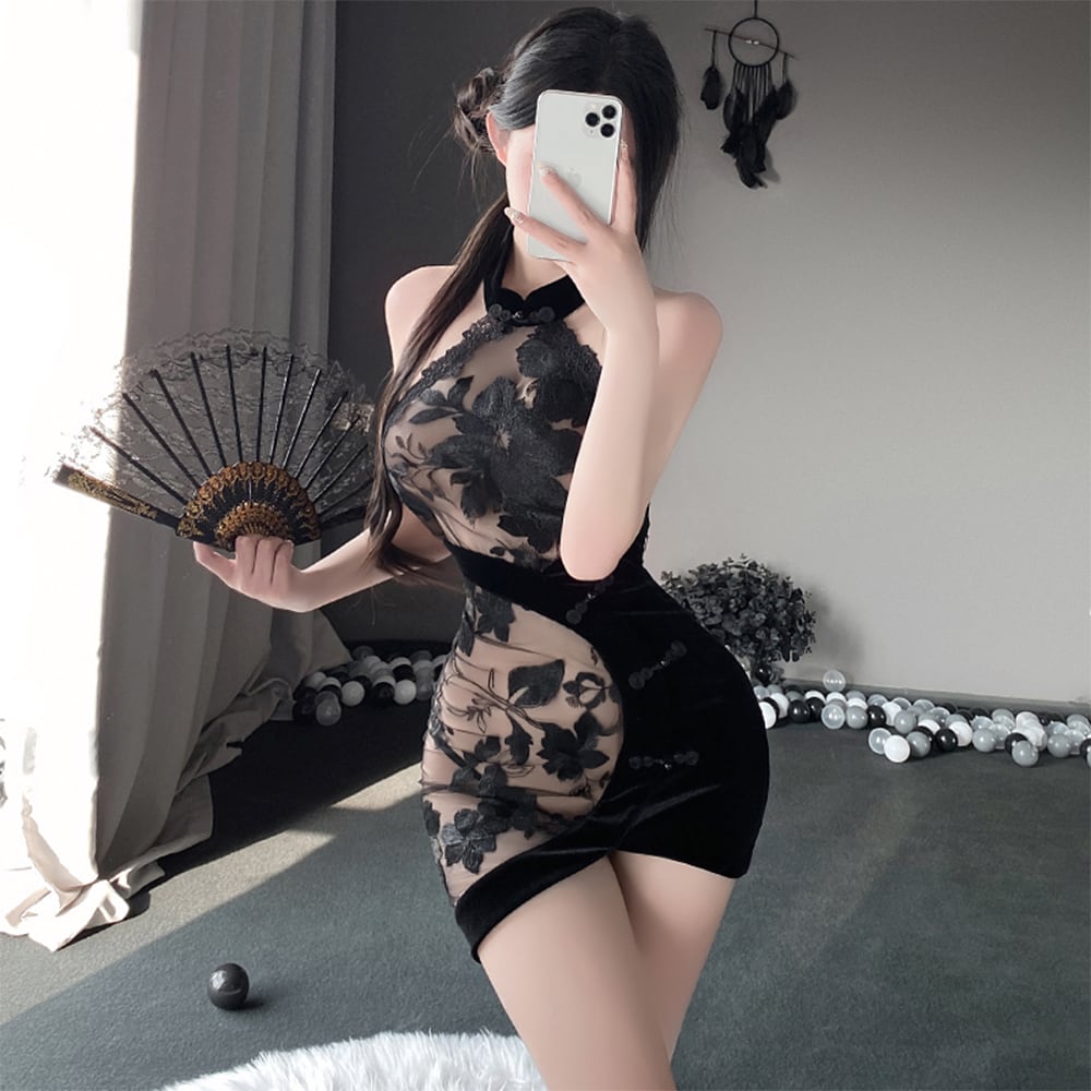 ■花デザインが大人の色気を引き出すチャイナ服風ベビードール