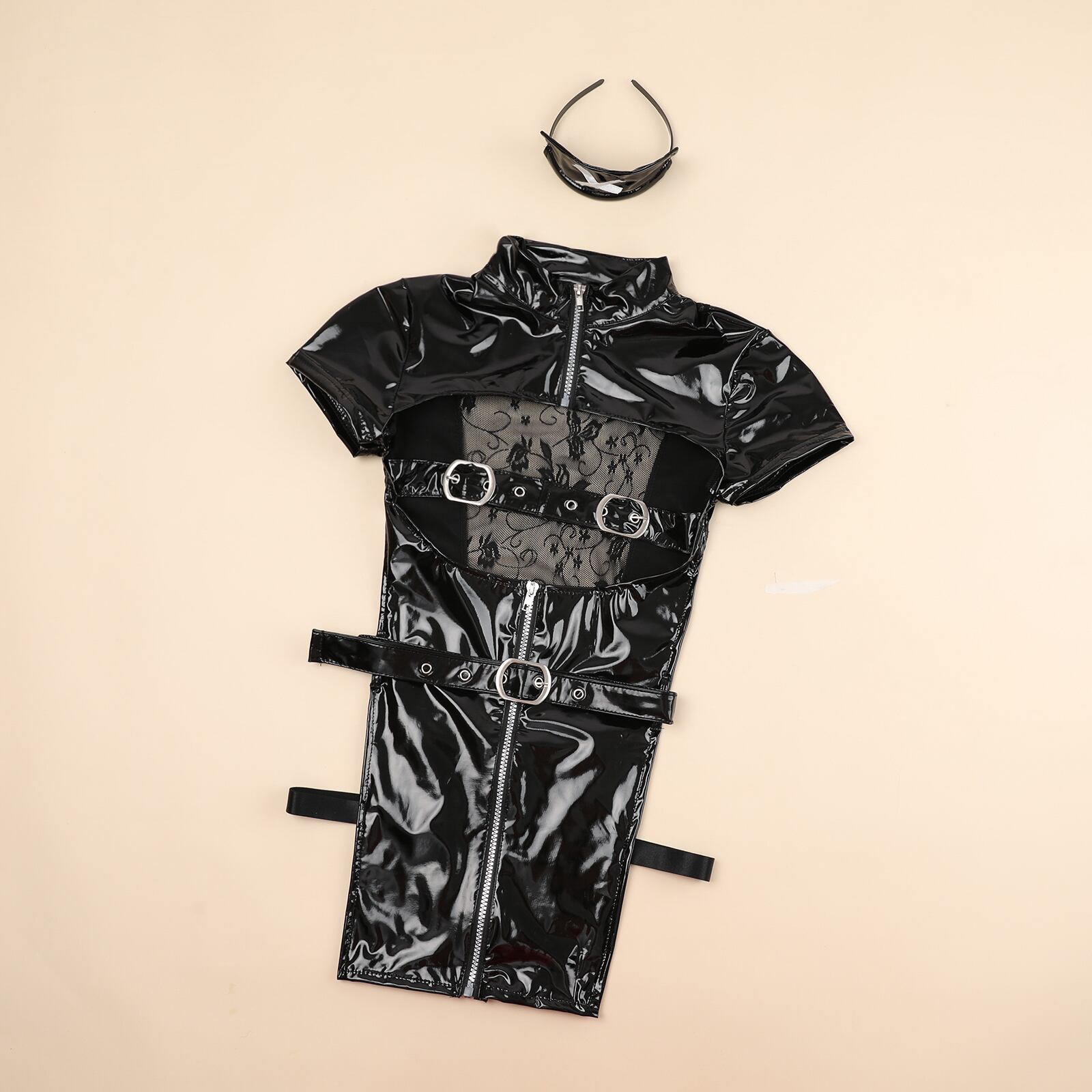 ■ツヤツヤのPUレザー生地で仕上げたキュートな小悪魔風セクシーコスプレセットです。