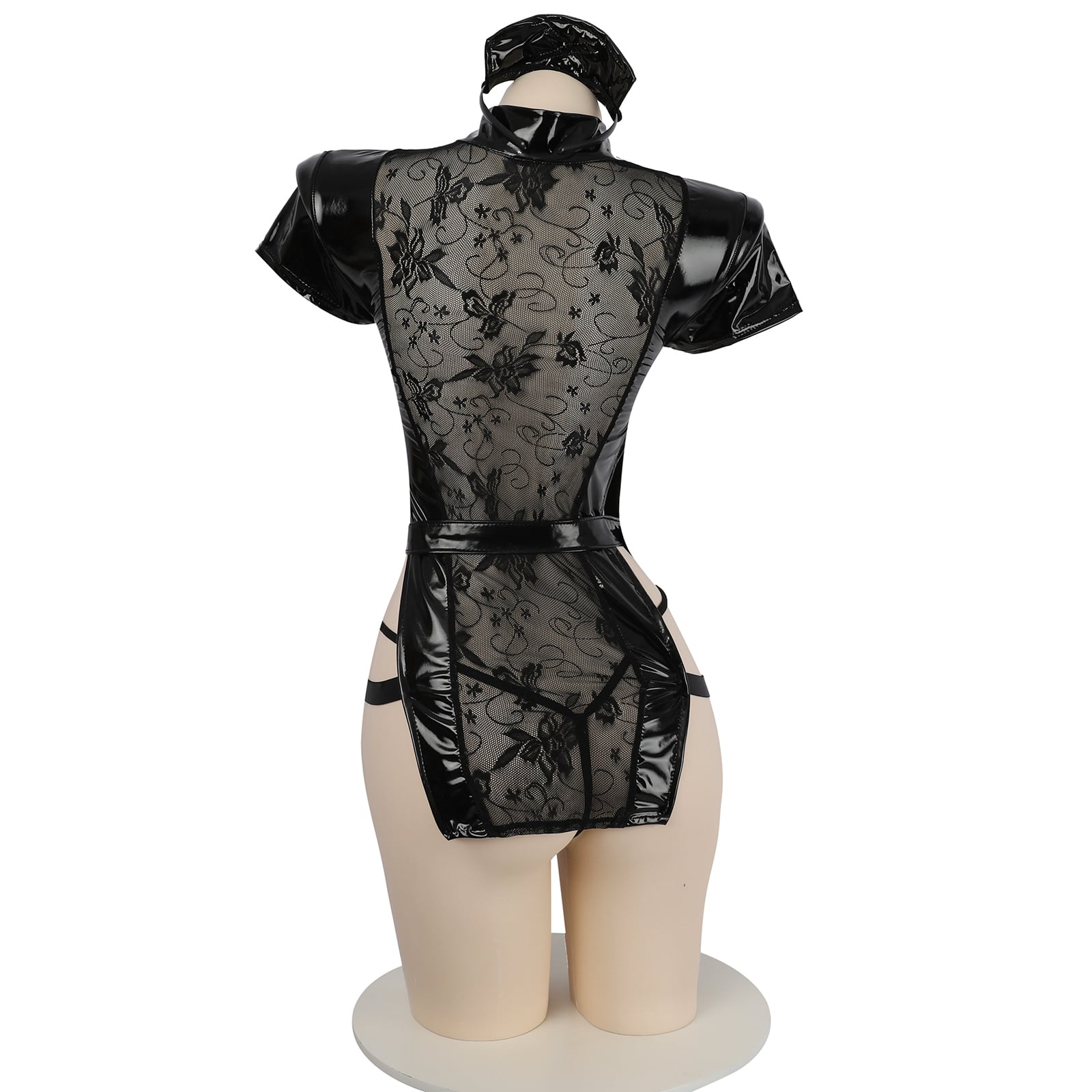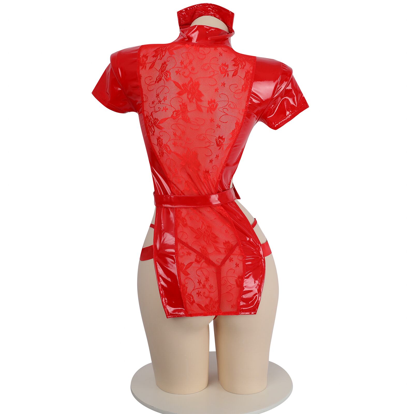 SENMHS ナース コスプレ セクシー PU革 エッチ エロ ナース服 制服 ボンデージ 看護婦 nurse 情趣 調教 エッチ な 萌え ミニ丈スカート ランジェリー コスチューム レディース ハロウィン 仮装 衣装 撮影会 レッド ブラック2081