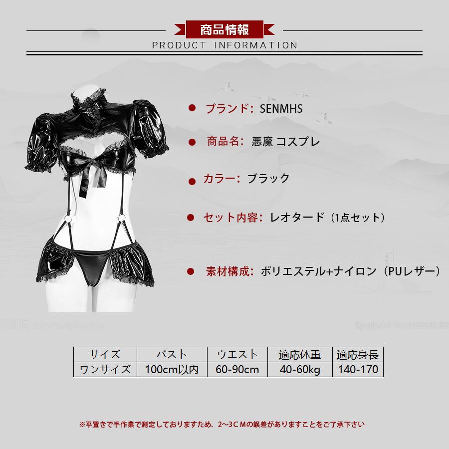 SENMHS スク水 コスプレ セクシー レオタード ハイレグ レザー PU革 女王様 小悪魔 デビル ウィッチ 吸血鬼 魔女 フェイクレザー エナメル 光沢 ボンテージ 仮装 コスチューム ハロウィン クリスマス レディース ブラック716brightskin
