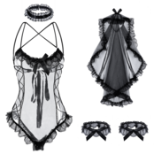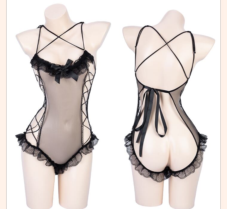 SENMHS ウェディングドレス 花嫁 結婚式 洋服 コスプレ セクシー コスチューム ランジェリー ベビードール レオタード セクシー ランジェリー インナーウエディング かわいい 女性 レディース ブラック ストッキング付き9433