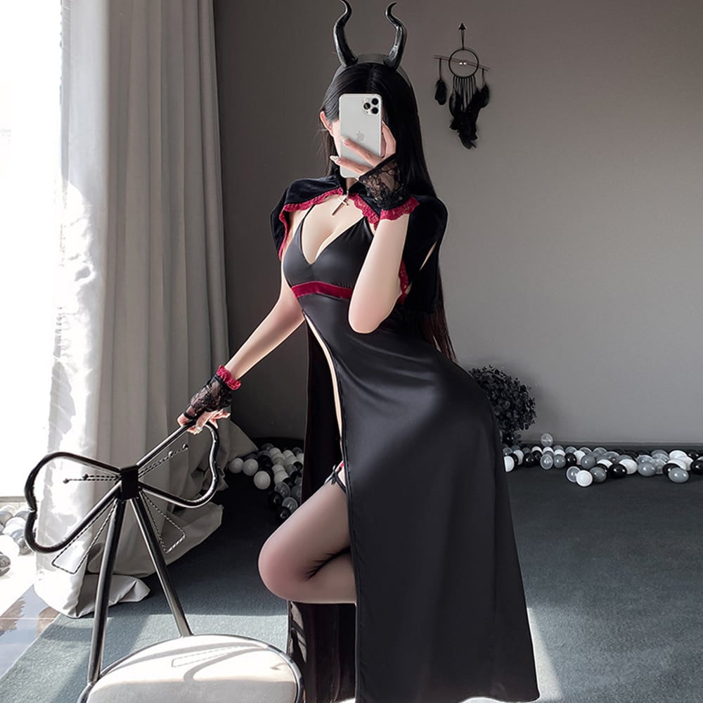 SENMHS ゴシック 魔女 コスプレ セクシー シスター エロ エッチ な 下着 過激 可愛い 情趣 ボディコン ハイレグ レオタード ドレス ランジェリー ベビードール ロング パーティー ハロウィン 撮影 レディース ブラック8829