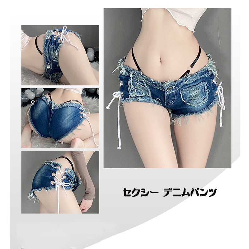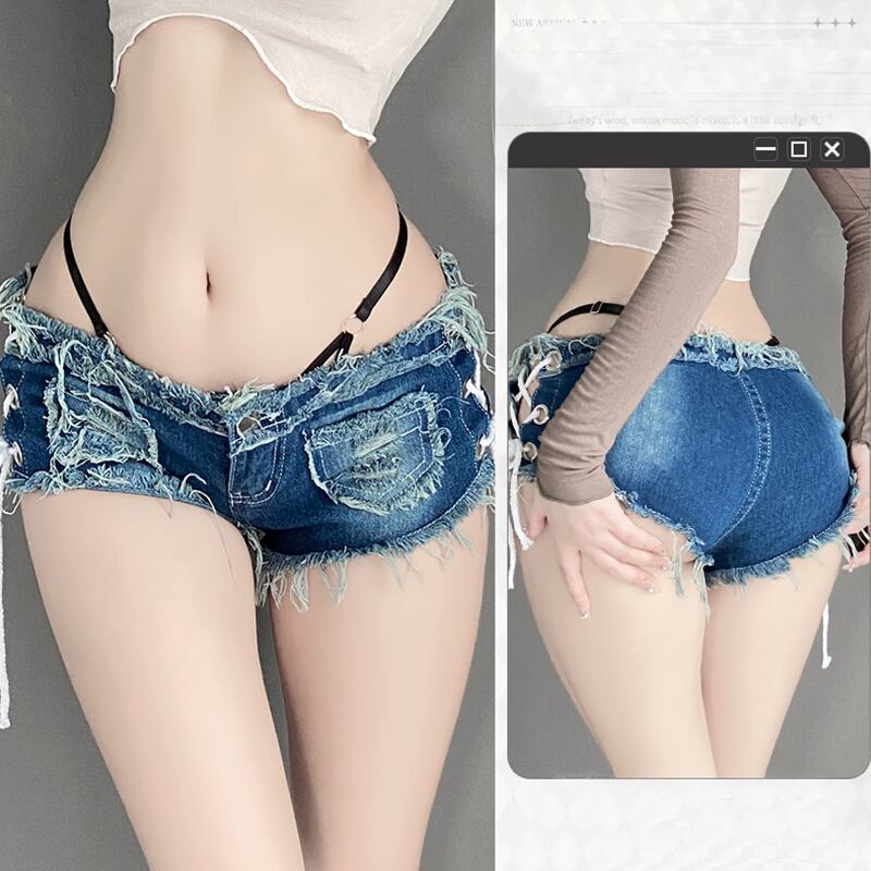 SENMHS マイクロミニ ショート パンツ デニム レディース セクシー クラッシュ 脚長 ローライズ ホットパンツ 超セクシー 美尻8024