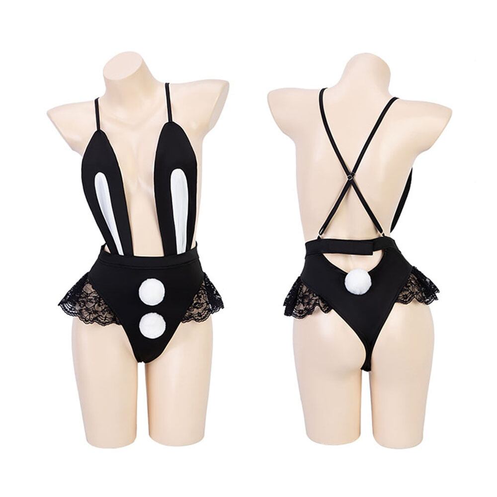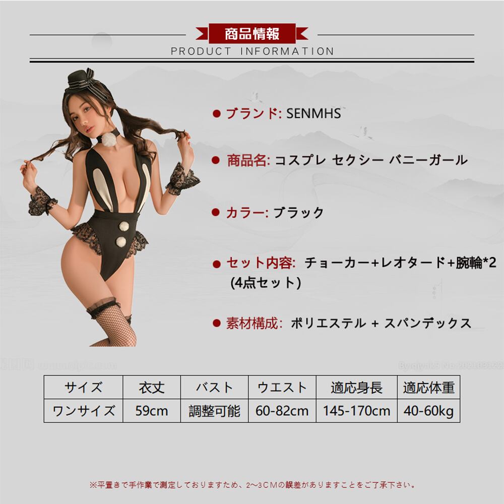 SENMHS コスプレ ランジェリー セクシー かわいい バニー バニーガール うさ耳 うさぎ カチューシャ コス ランジェリー 下着 レディース 可愛いコスプレ 大人 コスチューム ロリータ ブラック (髪飾りは付属しません)8862