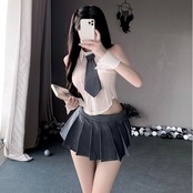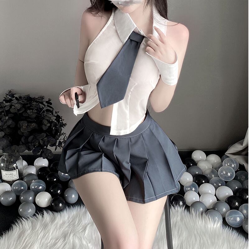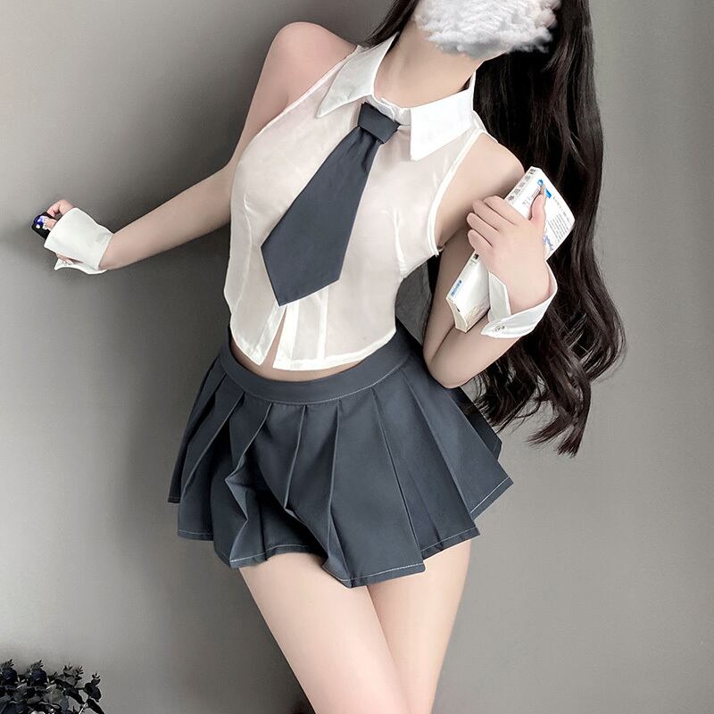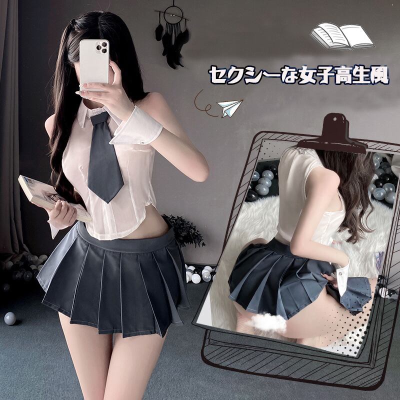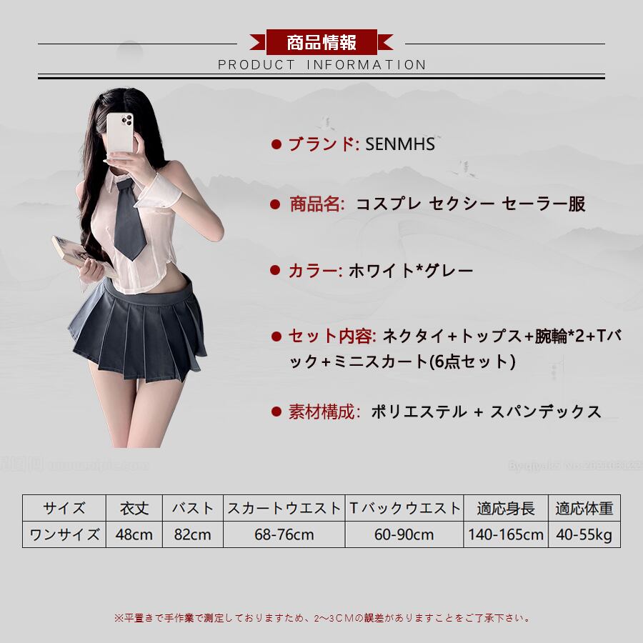 SENMHS コスプレ セクシー セーラー服 半袖 制服 女子 高校生 学生 アイドル風 制服 女子高生 エロ エッチ な えろい セクシー 貧乳 過激 可愛い JK コスチューム ハロウィン フリーサイズ レディース グレー6684