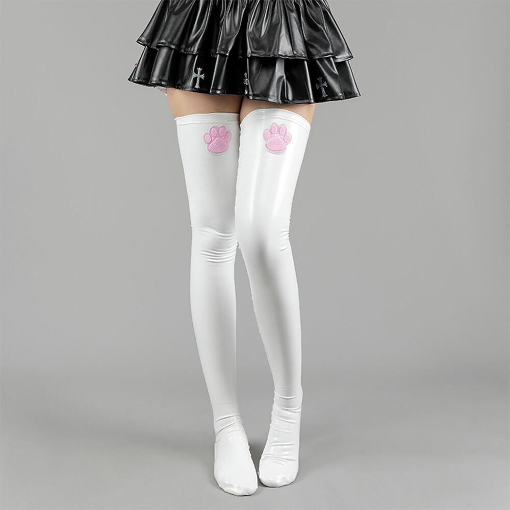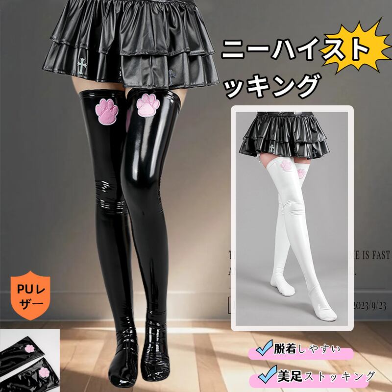 SENMHS ニーハイストッキング コスチューム コスプレ pu レザー ロリ系 コスチューム用小物 レディース バーニーソックス かわいい 美脚 1足セット ハイソックス 無地 靴下 ブラック ホワイトc3004a