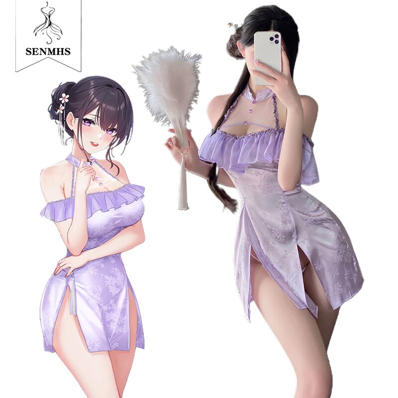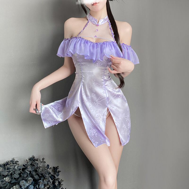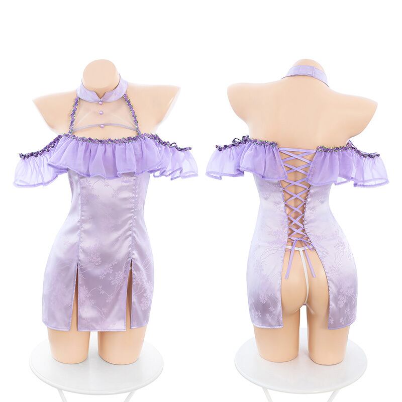 SENMHS セクシー チャイナ コスプレ 過激 エッチ な えろい 可愛い 中華 チャイナ風 チャイナ服 スリップ シースルー チャイナドレス ロング 仮装ハロウィン レディース フリーサイズ パープル6614
