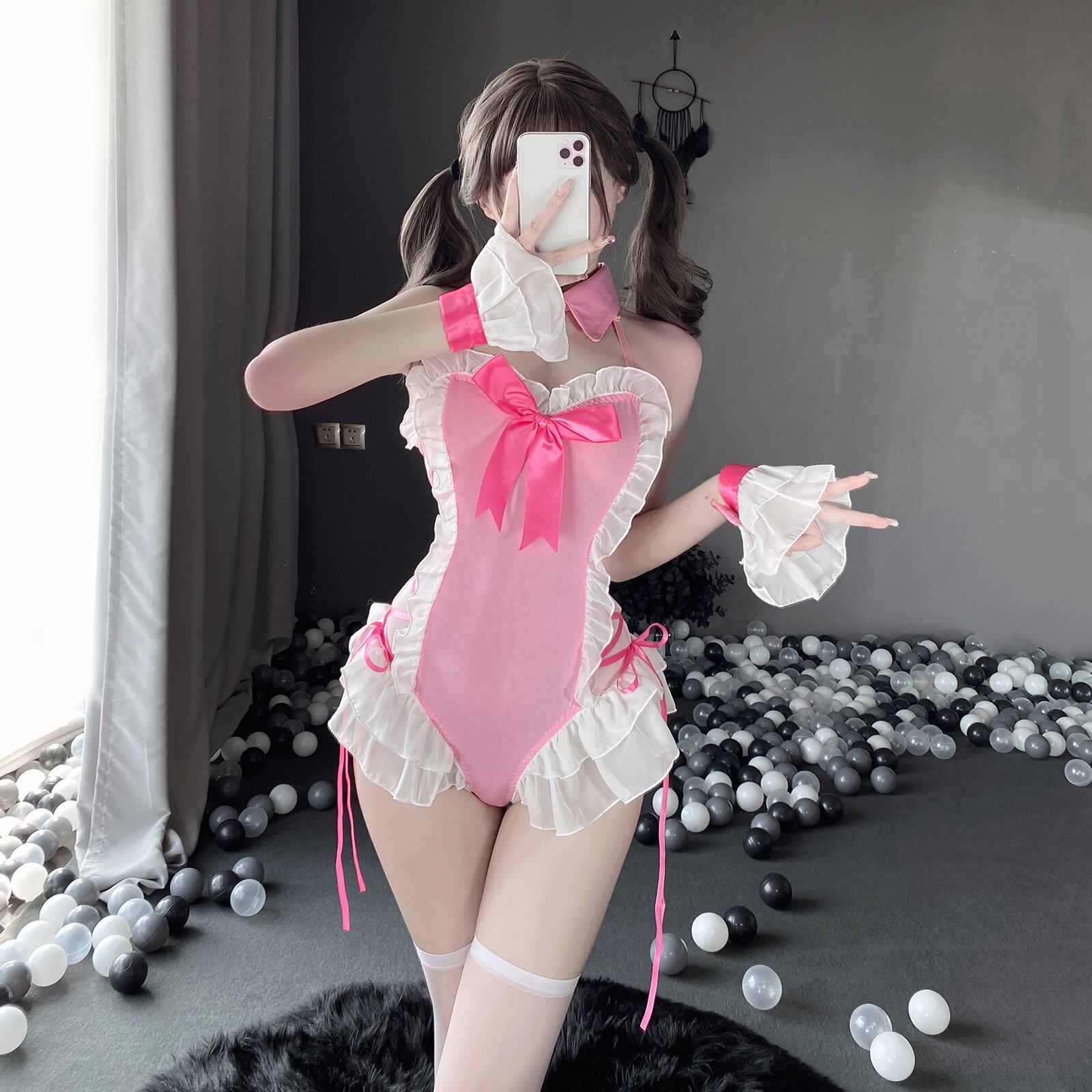 ■同色のニーハイストッキングとカチューシャが付いており、セットで着用するとより色気に拍車がかかります。