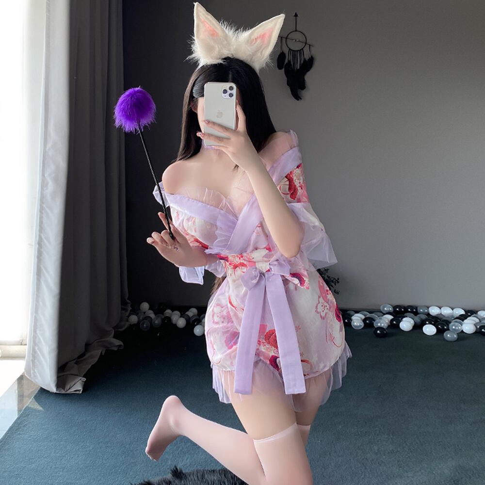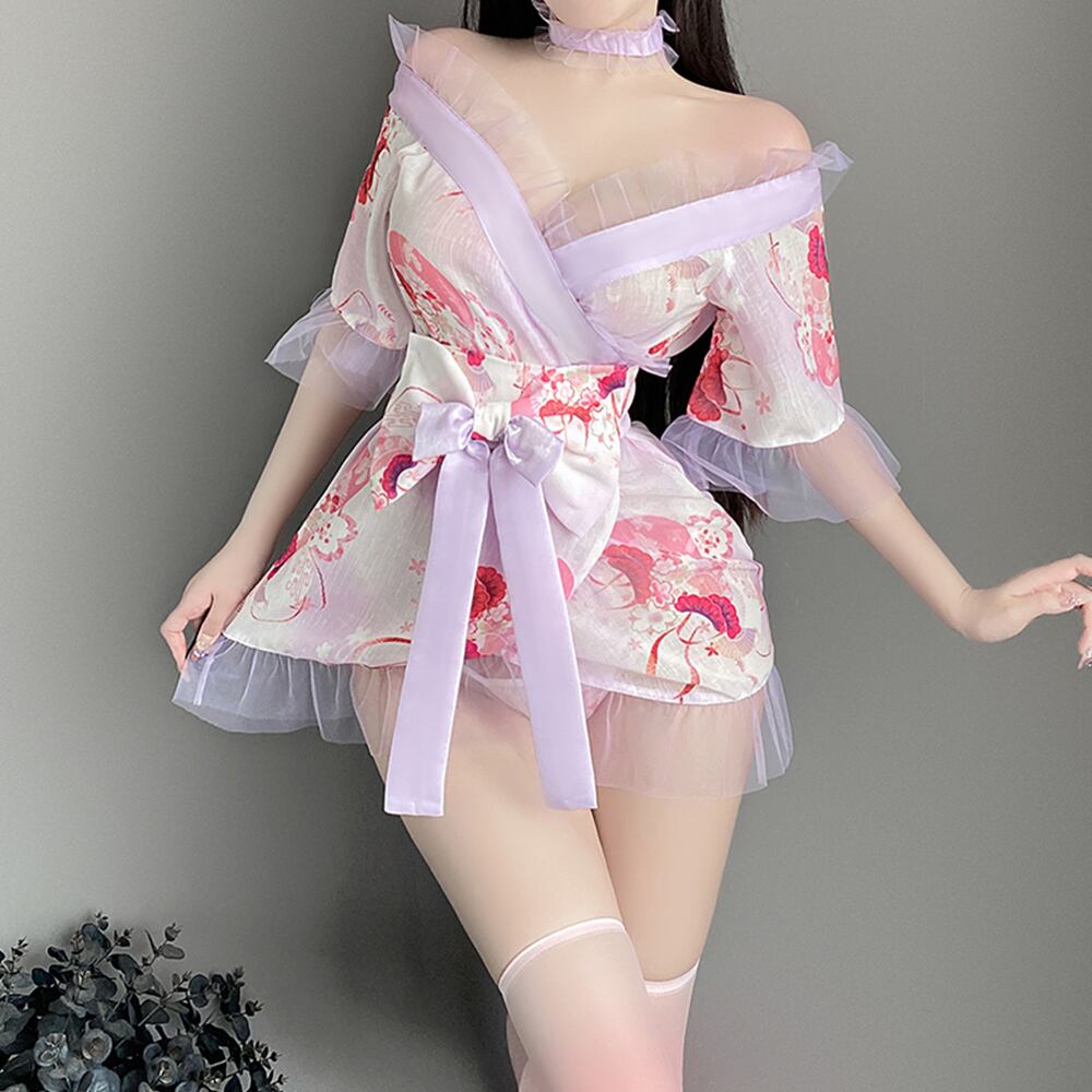 SENMHSセクシー コスプレ 浴衣 和服 着物 エロ エッチ な 下着 可愛い 調教 誘惑 過激 貧乳 アダルト 下着 cosplay 花魁 ランジェリー 衣装 和風 和装 コスチューム ベビドール 前開き 花魁 女性 仮装 撮影 レディース フリーサイズ ピンク8978