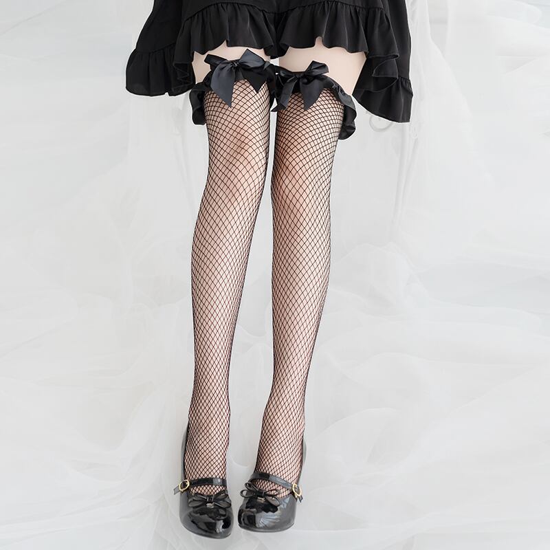 SENMHS白 ニーハイストッキング 網 コスチューム コスプレ ロリ系 コスチューム用小物 レディース バーニーソックス かわいい 美脚 1足セット ハイソックス 無地 靴下 シロ ブラック6016