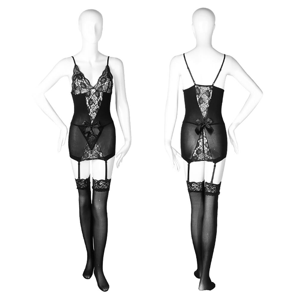 セット内容:カチューシャ+トップス(ガーターベルト付き)+Tバック+ストッキング(4点セット)