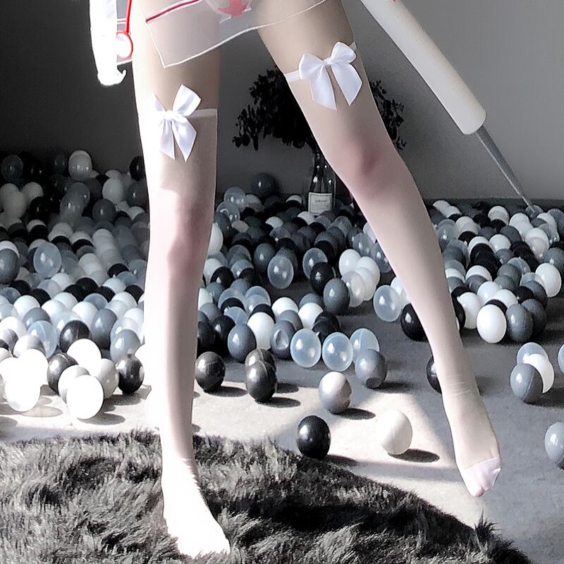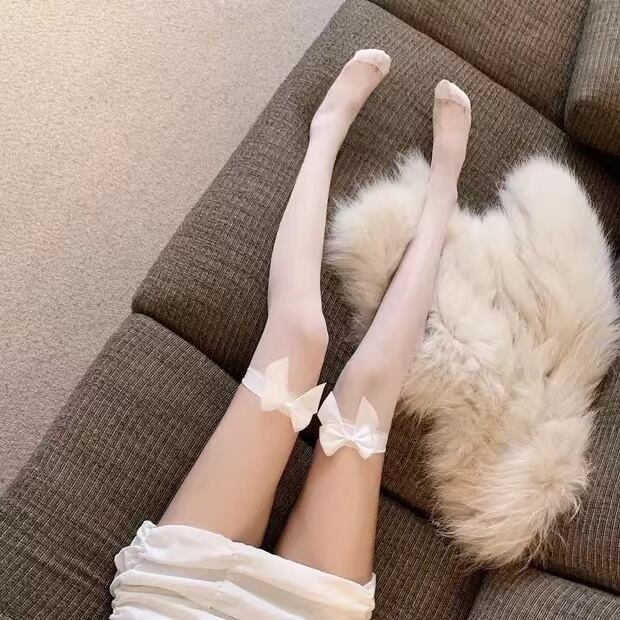■可愛いリボン付きニーハイストッキング。履き口の内側に滑り止め付き、見た目も機能も充実したニーハイデザイン。