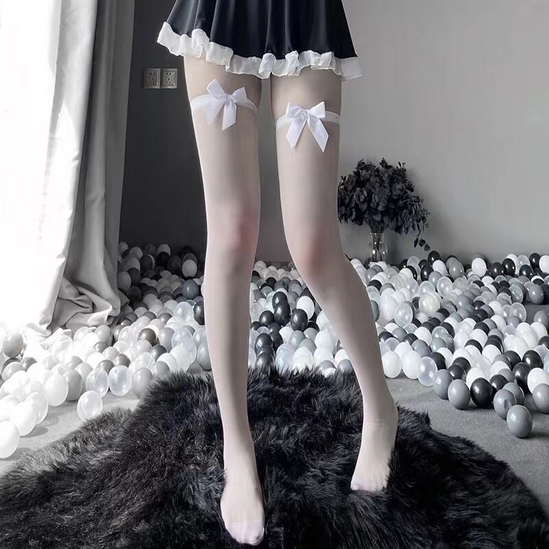 SENMHS ニーハイストッキング コスチューム コスプレ ロリ系 コスチューム用小物 レディース バーニーソックス かわいい 美脚 1足セット ハイソックス 無地 靴下 ホワイト ブラック7122