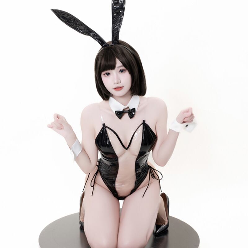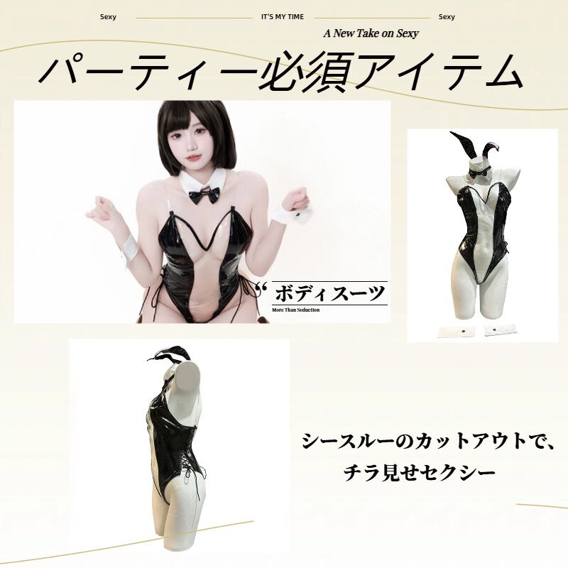 SENMHS 逆バニー シースルー バニーガール コスプレ セクシー エロ 調教 誘惑 過激 小悪魔うさぎ バニー コスチューム レオタード 仮装 ハイレグ 大胆 ランジェリー うさぎ耳 カチューシャ パーティー レディース ブラック4015