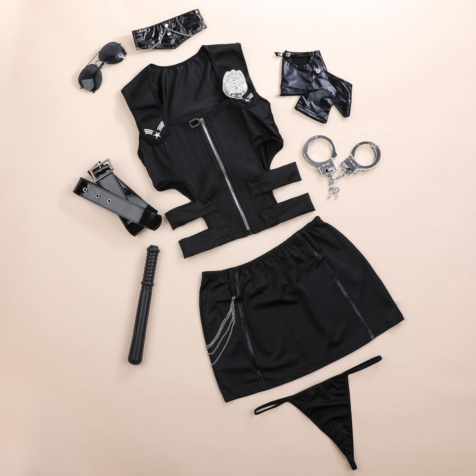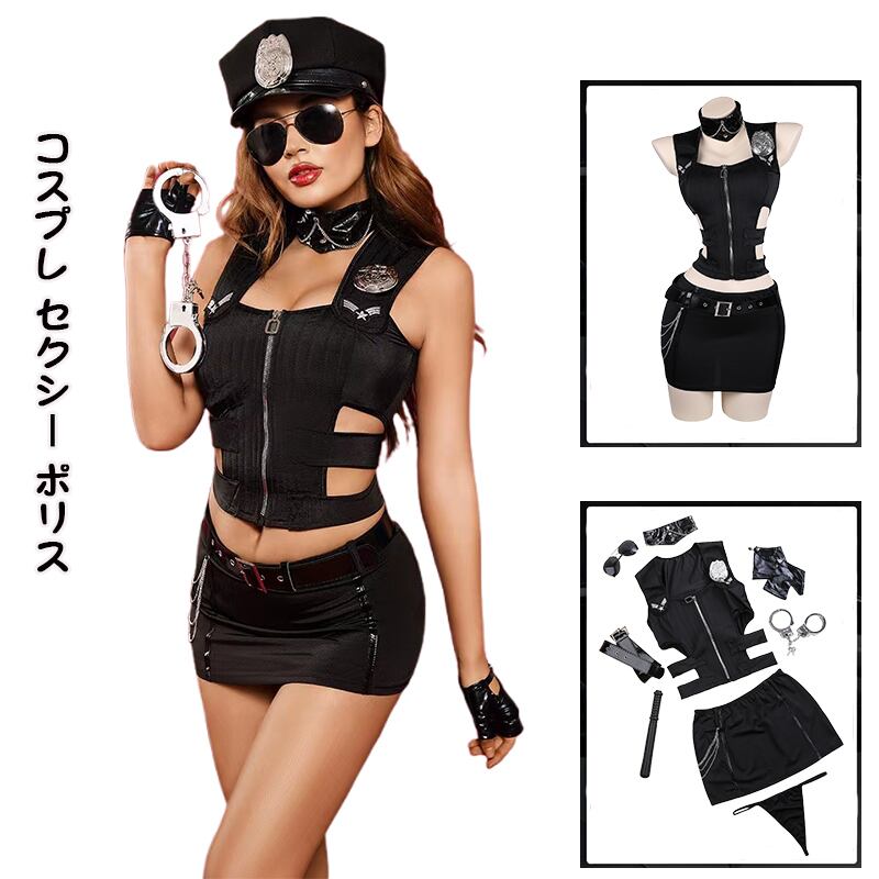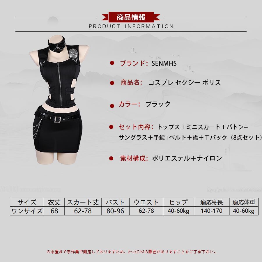 SENMHS コスプレ セクシー ポリス 婦人警官 警察 POLICE 下着 コスチューム 可愛い 海軍風 女子制服 ボンデージ ボディコン 衣装 仮装 ミニ へそ出し レディース フリーサイズ 黒9520