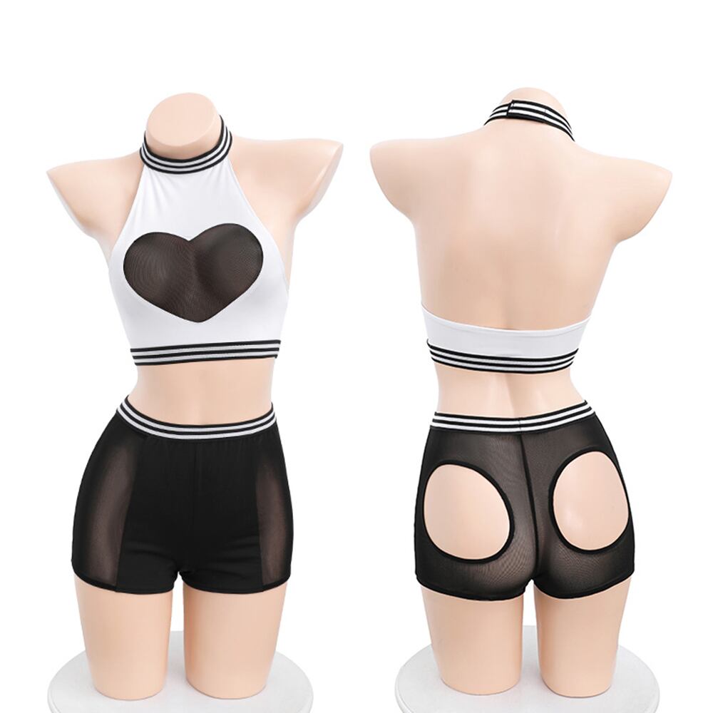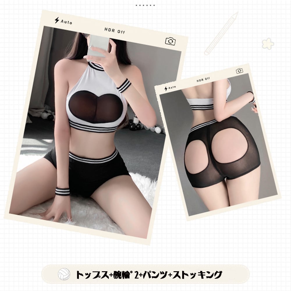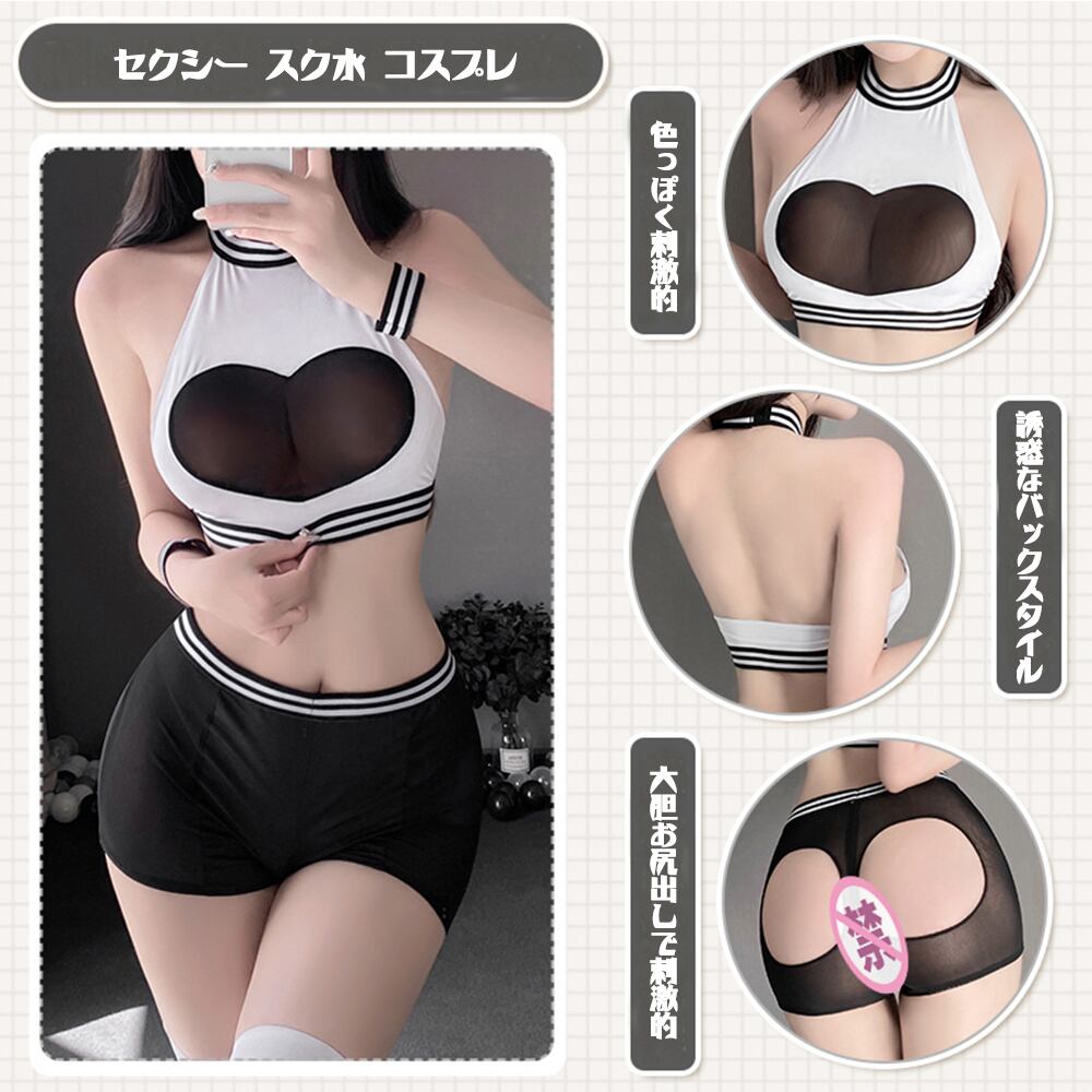 SENMHS コスプレ セクシー スク水 体操服 ブルマ エロ 下着 過激 貧乳 かわいい お尻出す スクール 透ける 水着 アニメ タイト 極薄 女子高生 コスチューム レディース 上下セット ニーハイストッキング付き6561