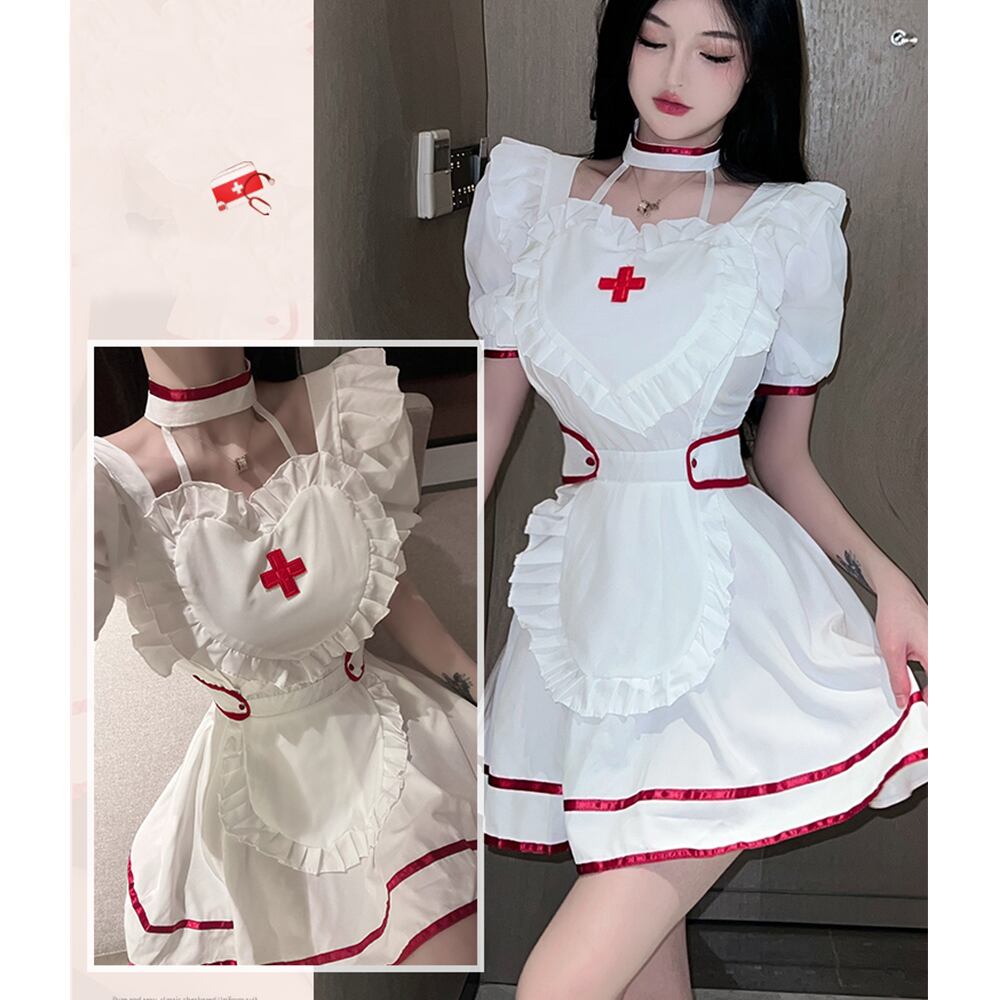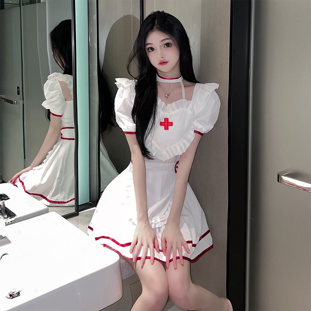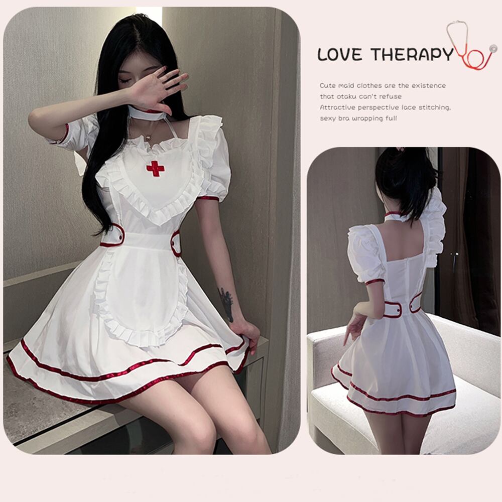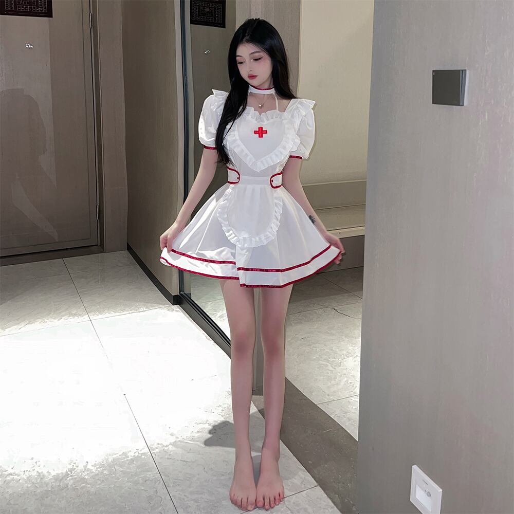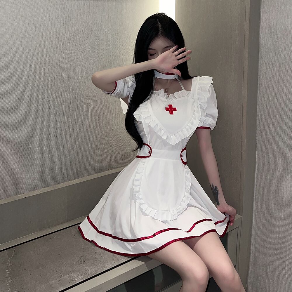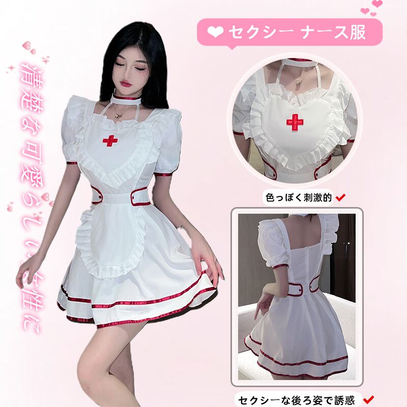 ■ヒップが見えちゃう短め丈のナース風セクシーコスプレ。過度な露出も少ないのでコスプレ初心者さんでも挑戦しやすいアイテムです