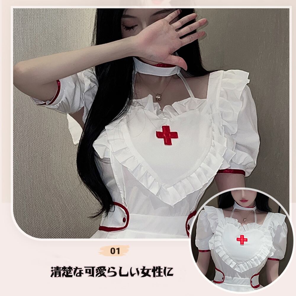 SENMHS ナース コスプレ セクシー エッチ な エロ ナース服 制服 ボンデージ 看護婦 nurse 情趣 調教 萌え ミニ丈 ランジェリー コスチューム レディース ハロウィン 仮装 衣装 撮影 ストッキング付き ホワイト2537