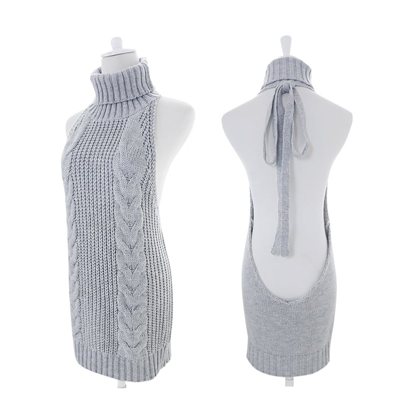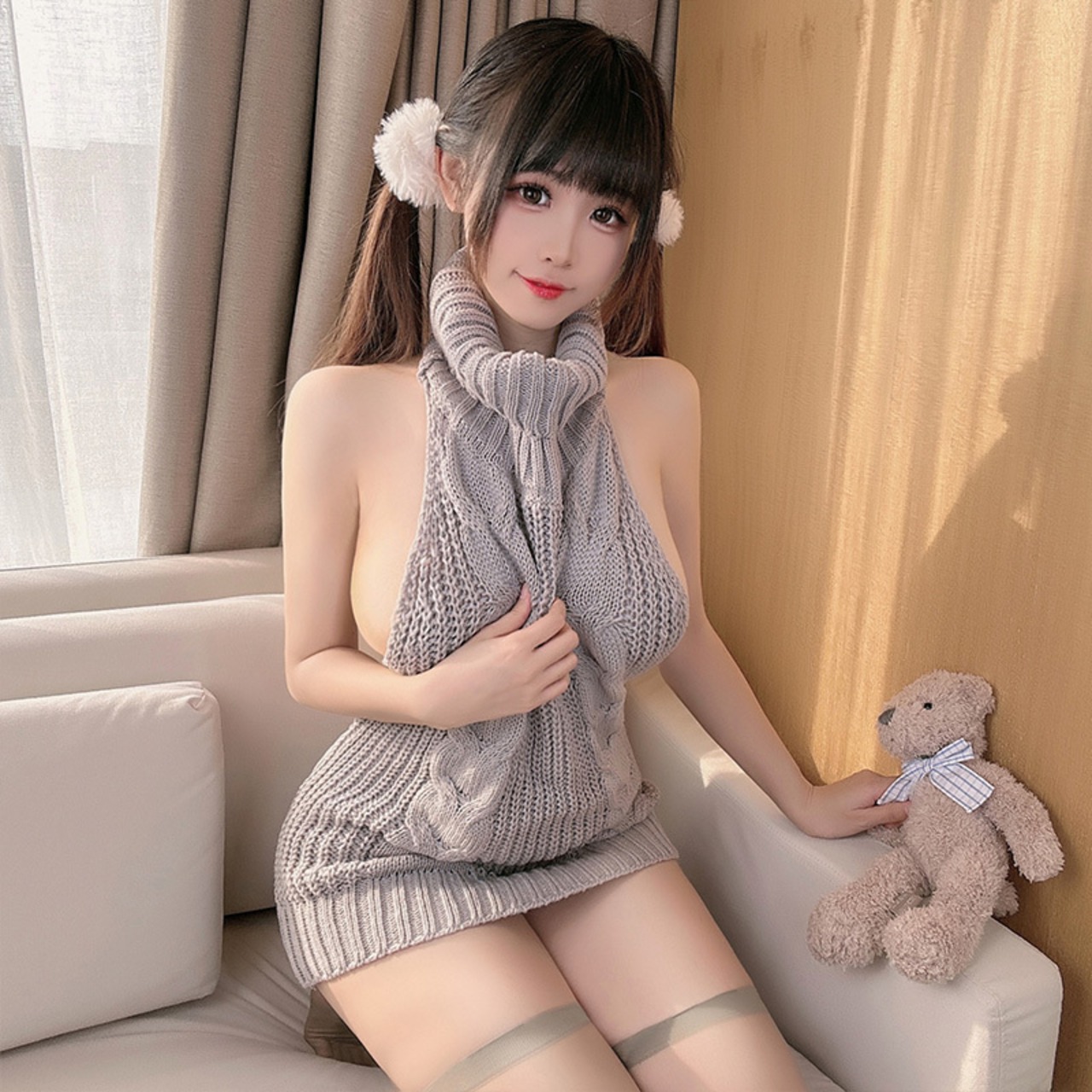 SENMHS童貞を殺すセーター ロリータ ニット 編み上げ 背中 胸 開き セーター セクシー ハイネック ノースリーブ ファッション おもしろ レディース コスチューム 団子少女風 コスチューム イベント パーティー 変装 仮装 撮影 グレー7904