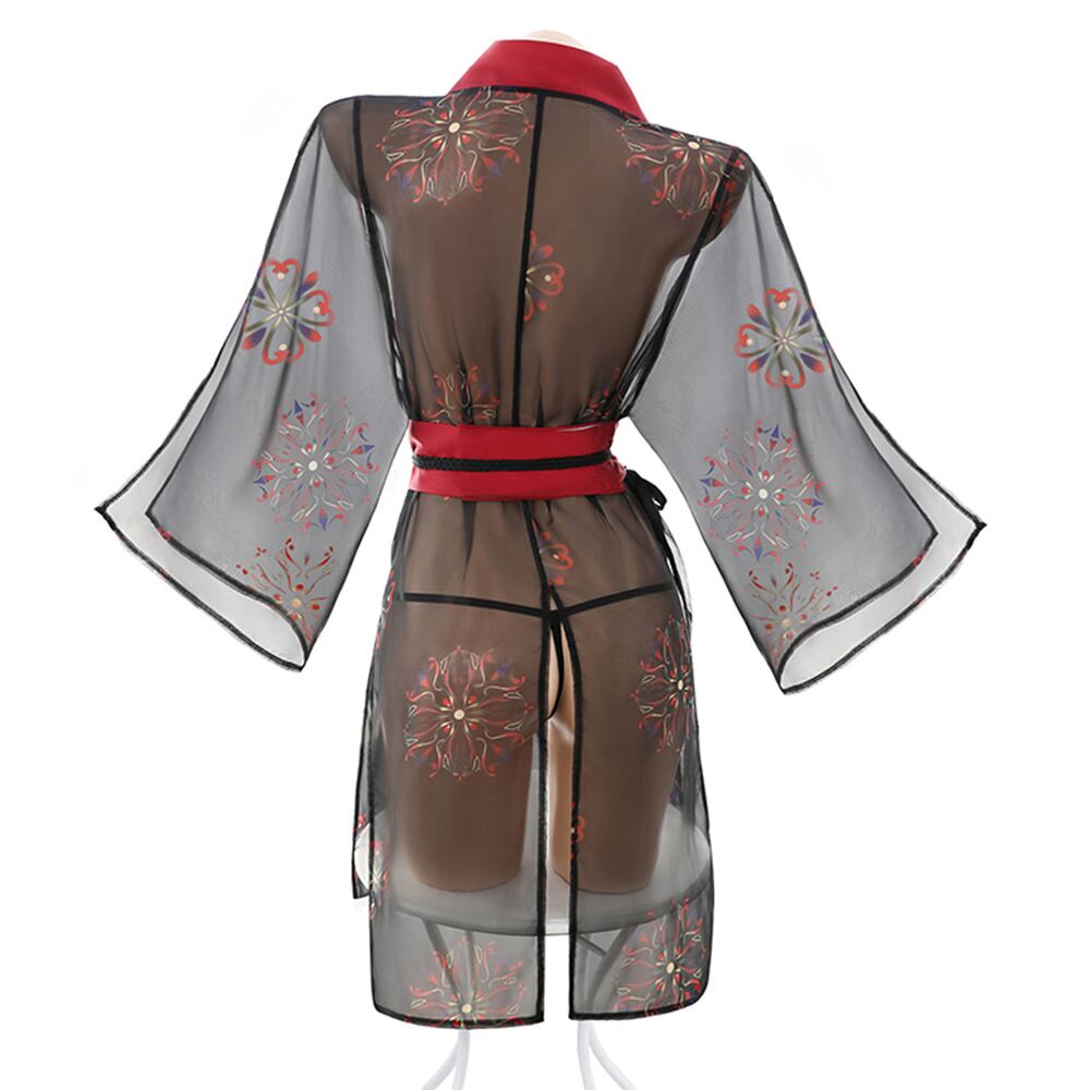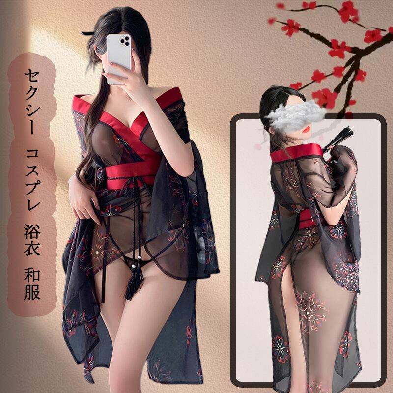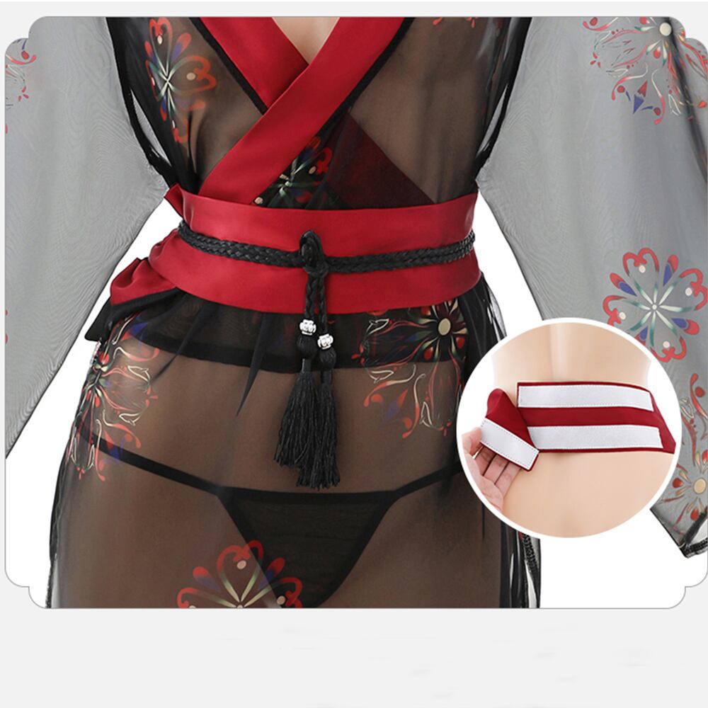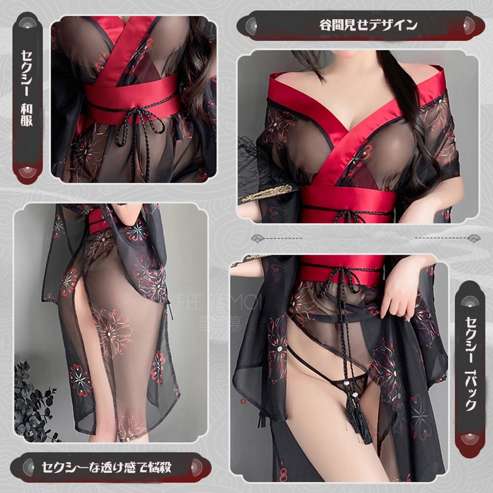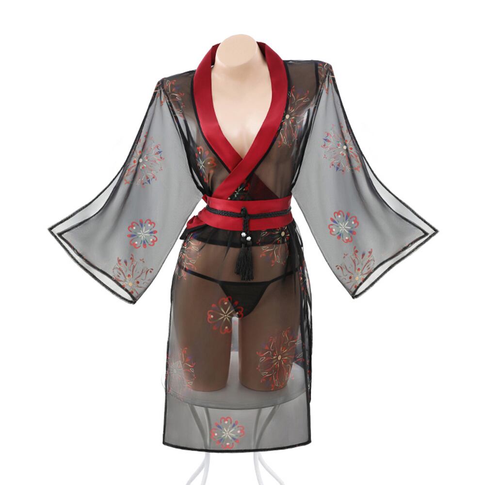 SENMHS セクシー コスプレ 浴衣 和服 着物 エロ エッチ な 下着 可愛い 調教 誘惑 過激 貧乳 アダルト cosplay 花魁 ランジェリー 和風 和装 コスチューム ベビドール 前開き 女性 仮装 撮影 レディース ガウン リボンベルト Tバック ひも フリーサイズ ブラック6628