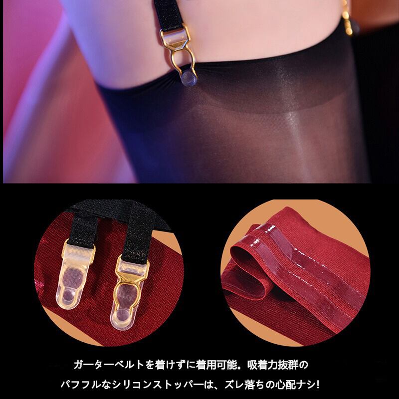 SENMHS 超光沢 ニーハイストッキング コスチューム コスプレ ロリ系 コスチューム用小物 レディース バーニーソックス かわいい 美脚 1足セット ハイソックス 無地 靴下 レッド ブラックw1335d
