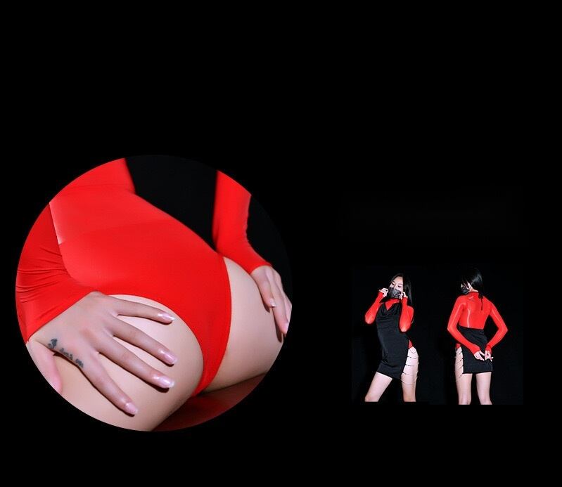 SENMHS 超光沢 セクシー レオタード タイツ ボディタイツ ボディストッキング ハイレグ 下着 ボディコン ランジェリー シースルー 透視 エロ 大人 コスプレ ハロウィン ワンサイズ レッド ブラックl1010y
