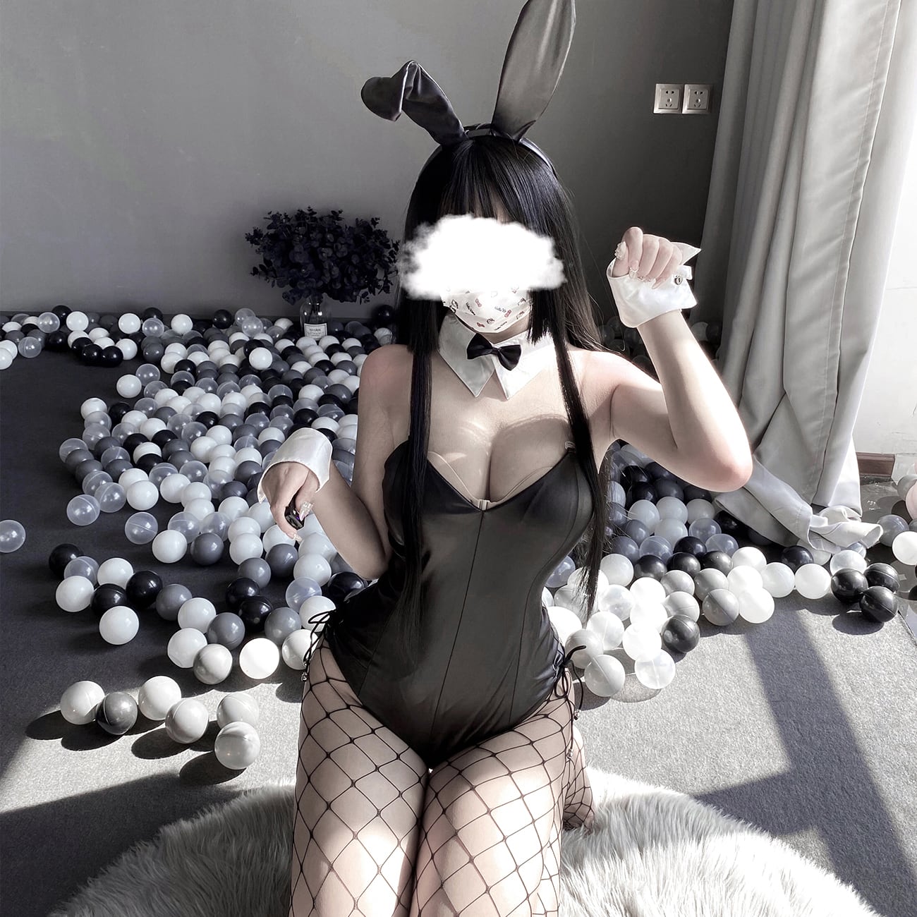 SENMHSセクシー バニーガール コスプレ うさぎ バニー コスチューム 仮装 バニーちゃん レオタード フェイク レザー 大胆 過激 ロング耳 バニーガール風ランジェリー 6点セット パーティー イベント 撮影7033