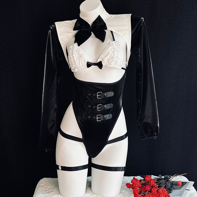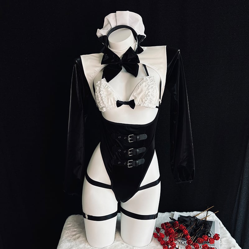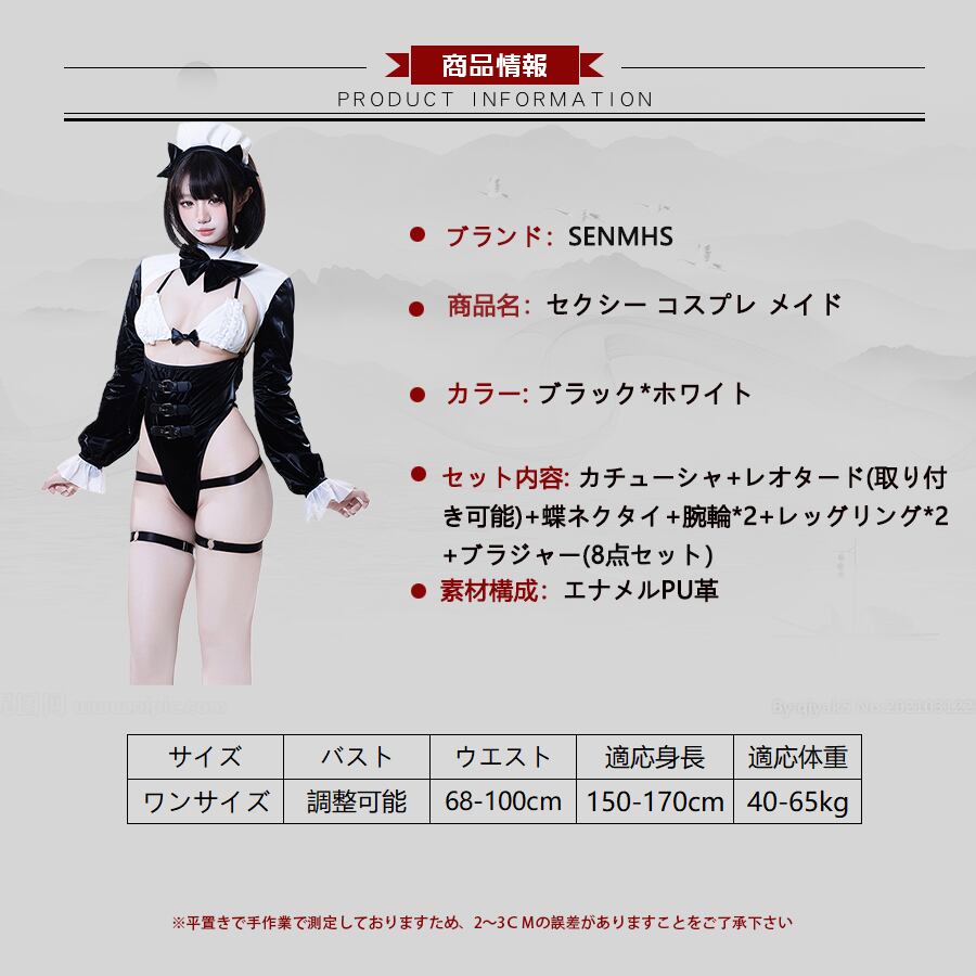 SENMHS メイド コスプレ エロ 過激 エッチ な えろい セクシー PU革 SM 拘束 萌え 悪魔 誘惑 ランジェリー ボディコン ボンデージ エナメル レディース コスチューム ワンサイズ ブラックss03