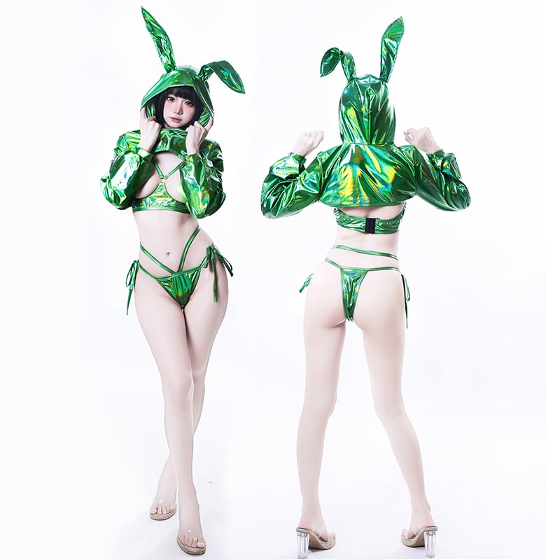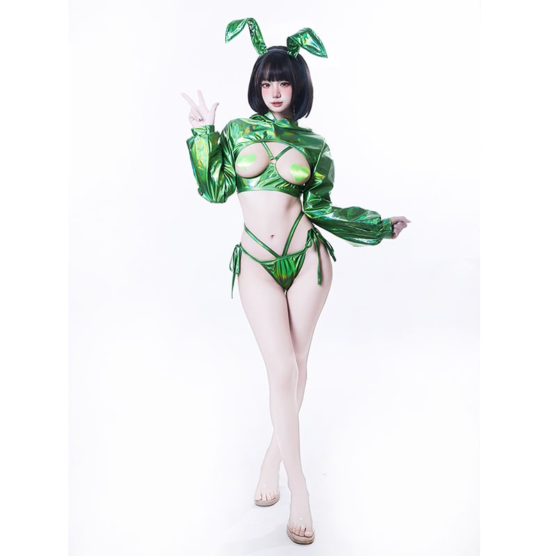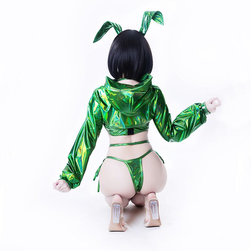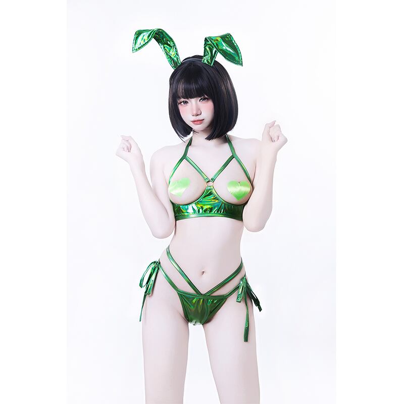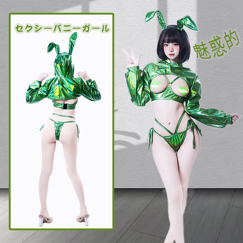 SENMHS おっばい丸出しすけべバニーガール 逆バニー シースルー バニーガール コスプレ セクシー エロ 調教 誘惑 過激 小悪魔 うさぎ コスチューム レオタード 仮装 ハイレグ 大胆 うさぎ耳 カチューシャ パーティー レディース グリーンmh16n