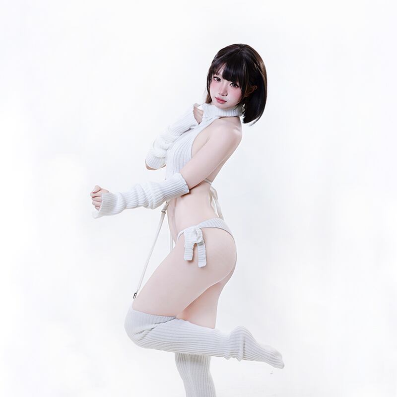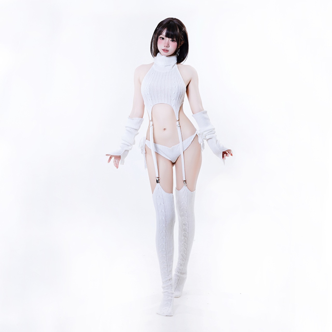 SENMHS 童貞を殺すセーター ロリータ ニット ビキニ セーター セクシー ハイネック ファッション おもしろ コスプレ服 コスチューム 団子少女風 コスチューム イベント パーティー 変装 仮装 撮影 レディース トップス ビキニ 手袋 靴下 ガーター ホワイトdg04n