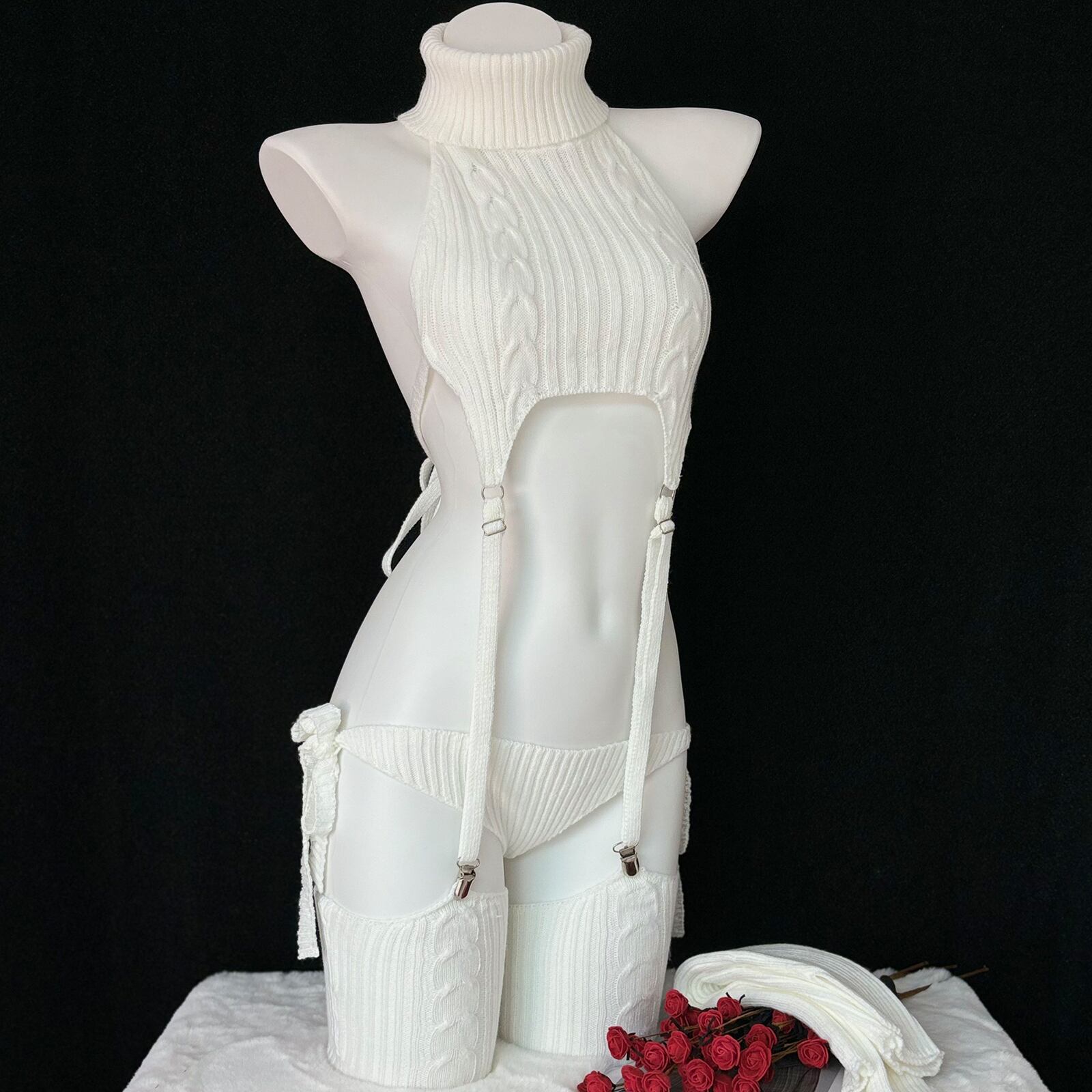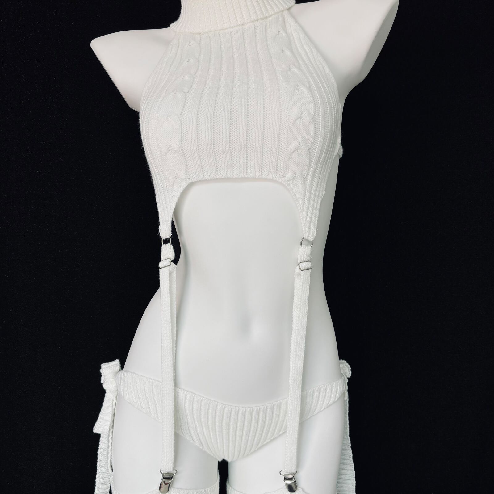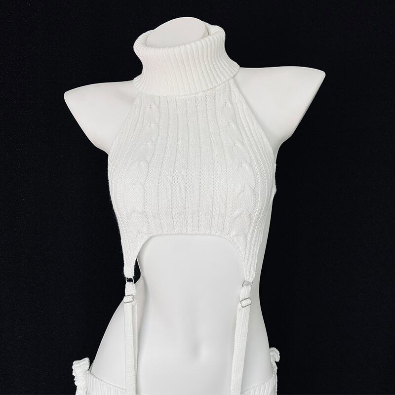 SENMHS 童貞を殺すセーター ロリータ ニット ビキニ セーター セクシー ハイネック ファッション おもしろ コスプレ服 コスチューム 団子少女風 コスチューム イベント パーティー 変装 仮装 撮影 レディース トップス ビキニ 手袋 靴下 ガーター ホワイトdg04
