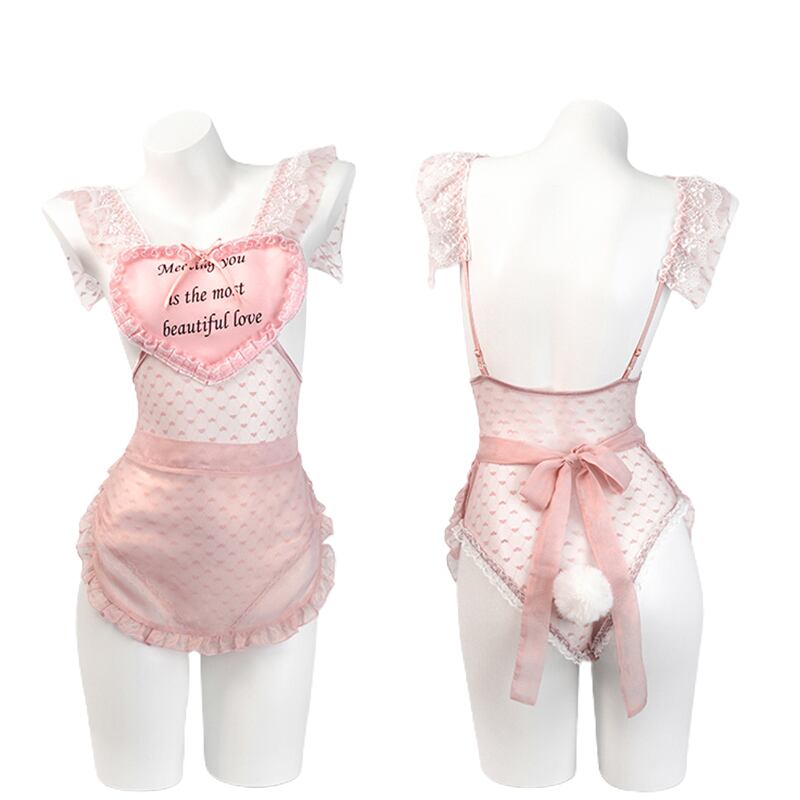 SENMHS スク水 コスプレ セクシー バニーガール 逆バニー メイド 穴空き オープンクロッチ ランジェリー スクール水着 バニー メイド 貧乳 過激 エッチ な えろい カチューシャ ストッキング付き レディース ピンク