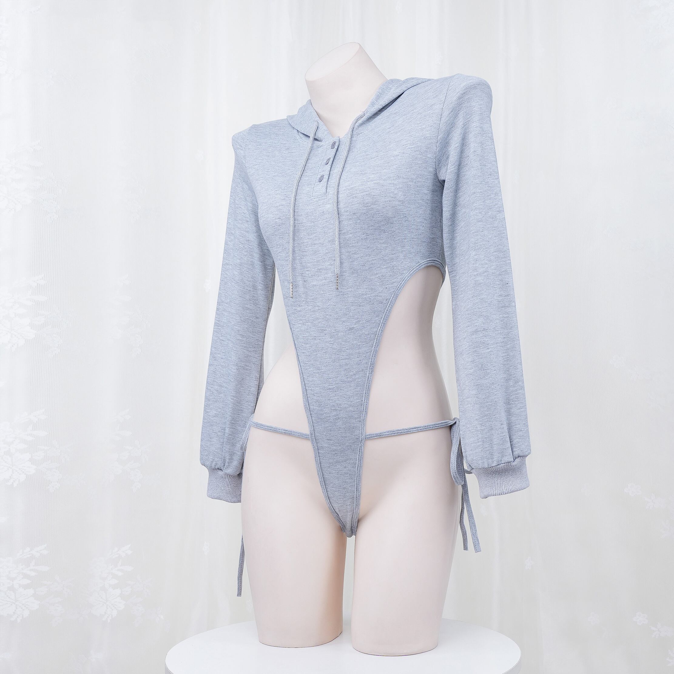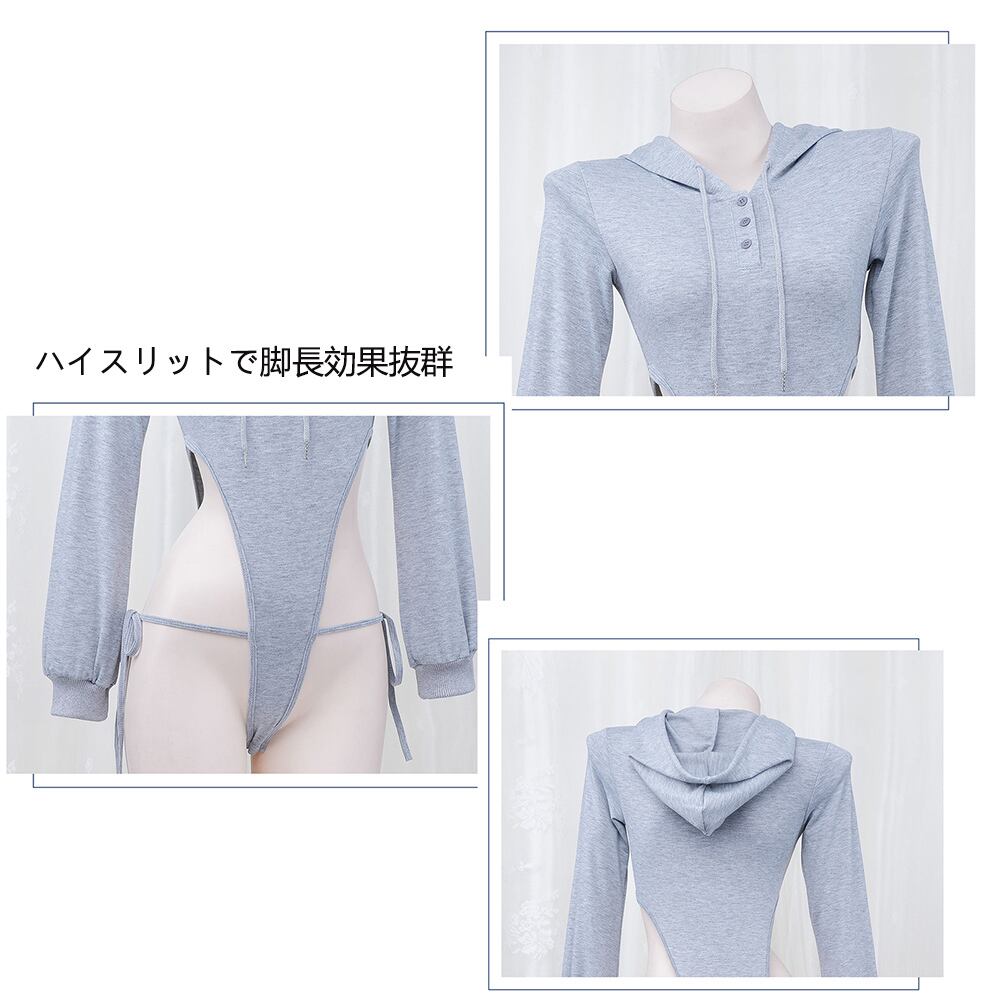 SENMHS セクシー コスプレ 長袖 トップス エロ ランジェリー エッチ な 下着 過激 大胆 コスチューム レオタード ボディコン ハイレグ インナー ハロウィン 撮影 仮装 フリーサイズ レディース グレーc1010