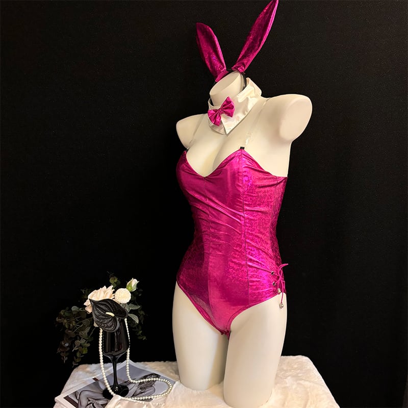 ■ツヤツヤのPUレザー生地で仕上げたキュートな小悪魔風バニーガールセクシーコスプレです。
