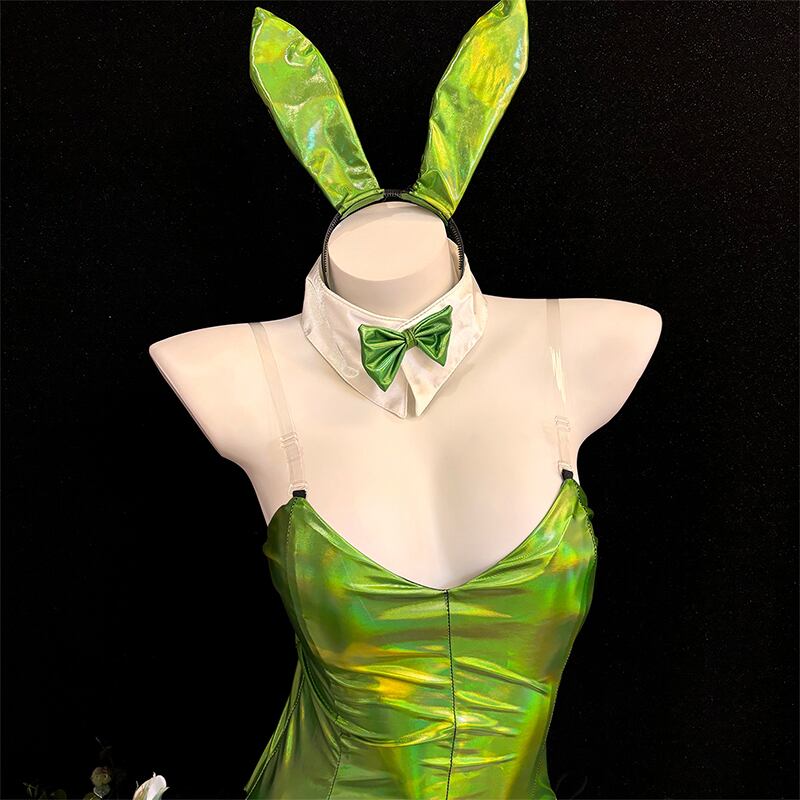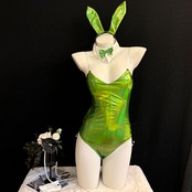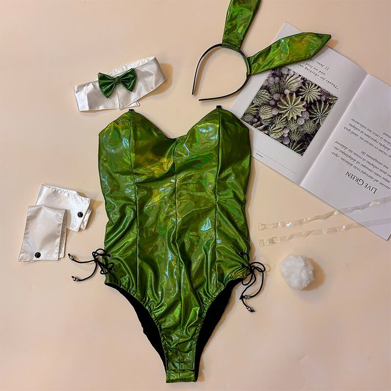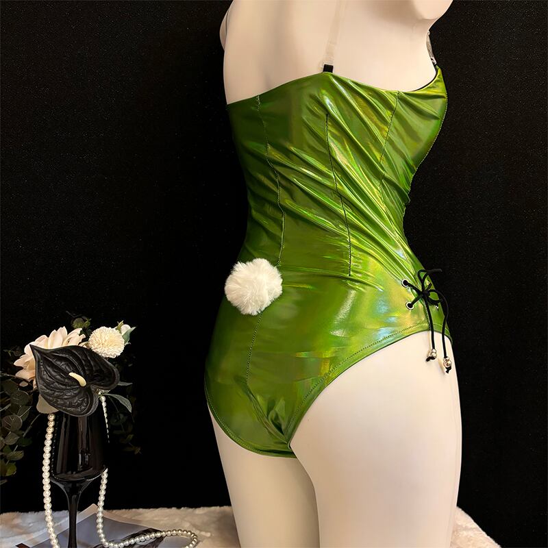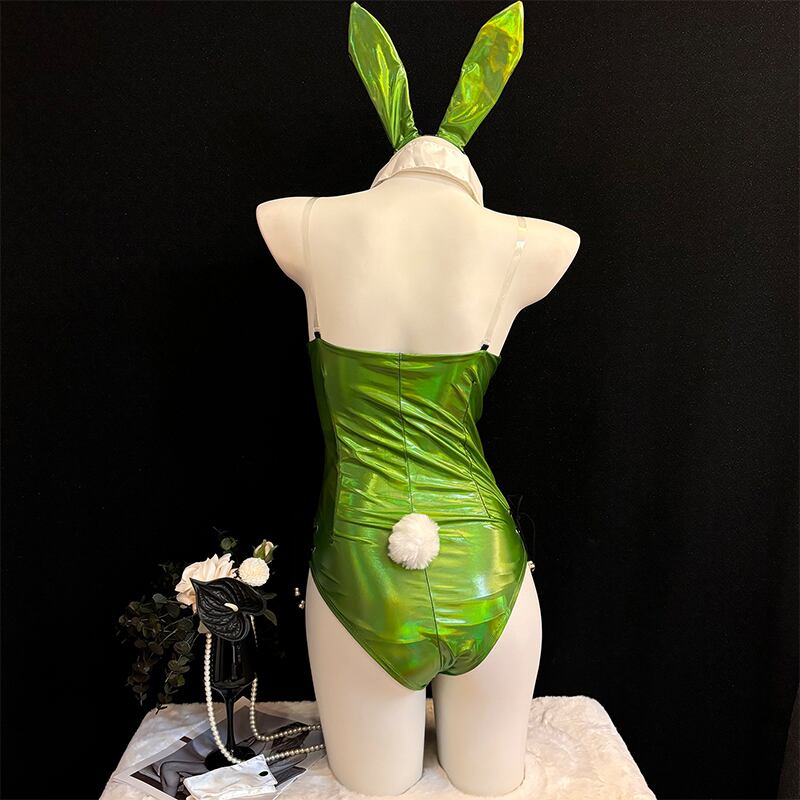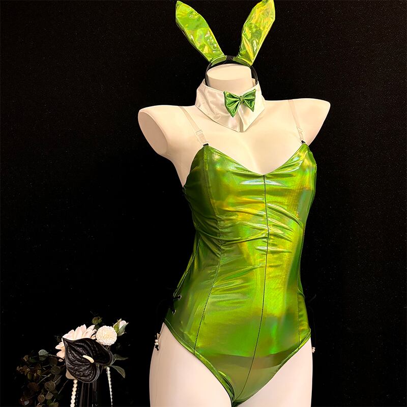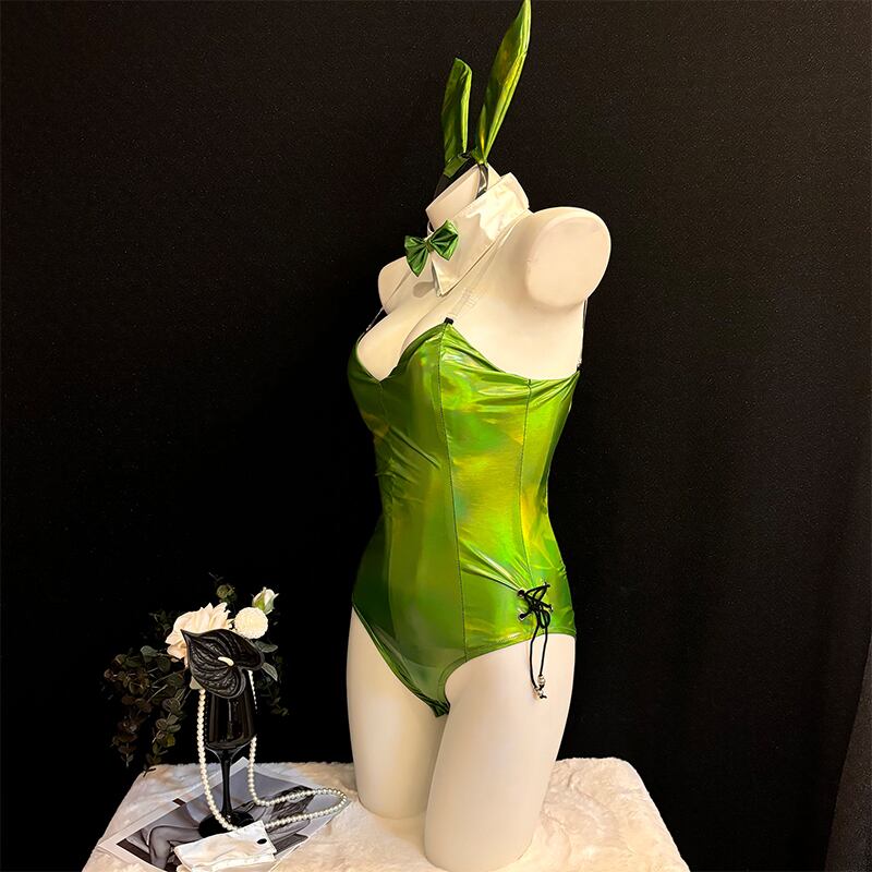 ■ツヤツヤのPUレザー生地で仕上げたキュートな小悪魔風バニーガールセクシーコスプレです。
