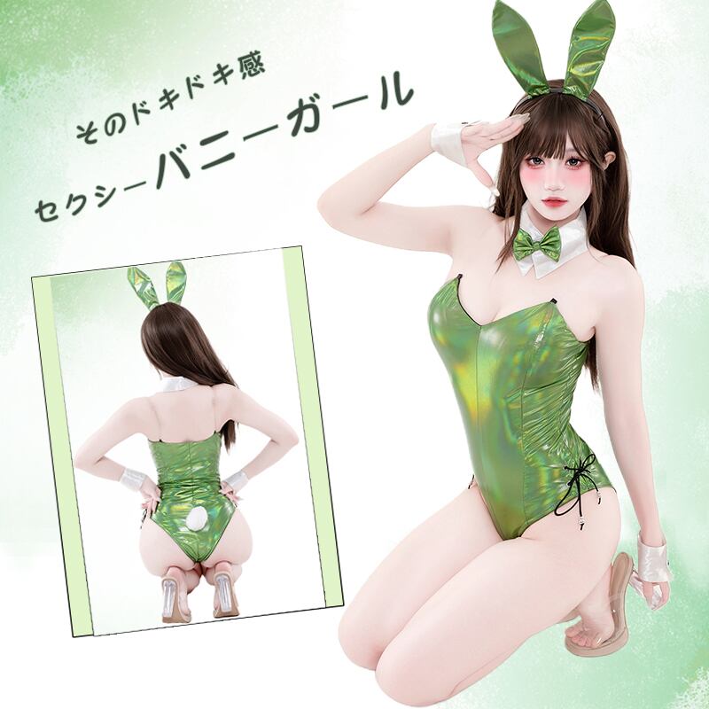 SENMHS バニーガール コスプレ セクシー うさぎ バニー コスチューム ハイレグ レオタード フェイク レザー 大胆 エロ エッチ な 過激 貧乳 ランジェリー オープンクロッチ 誘惑 萌え 仮装 撮影 レディース フリーサイズ グーリンmh20