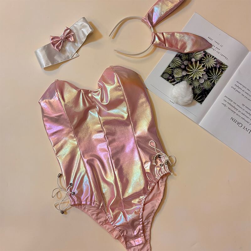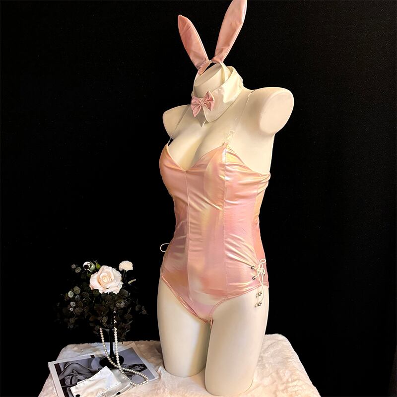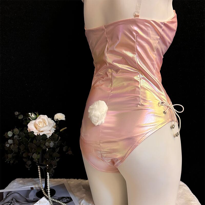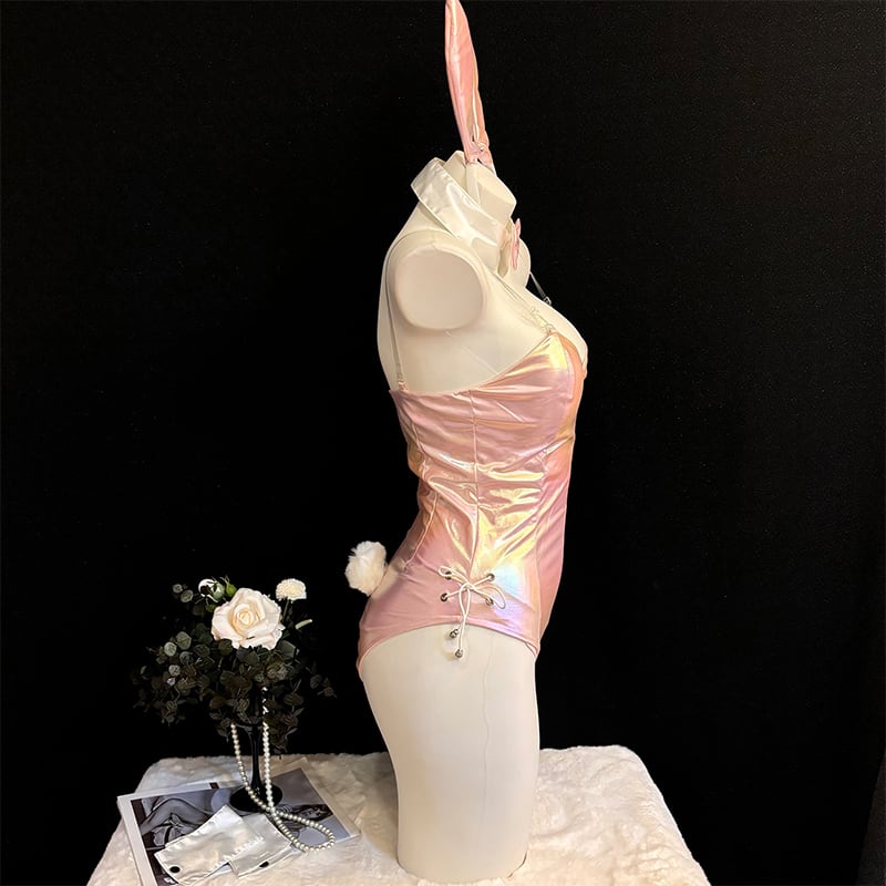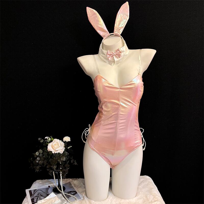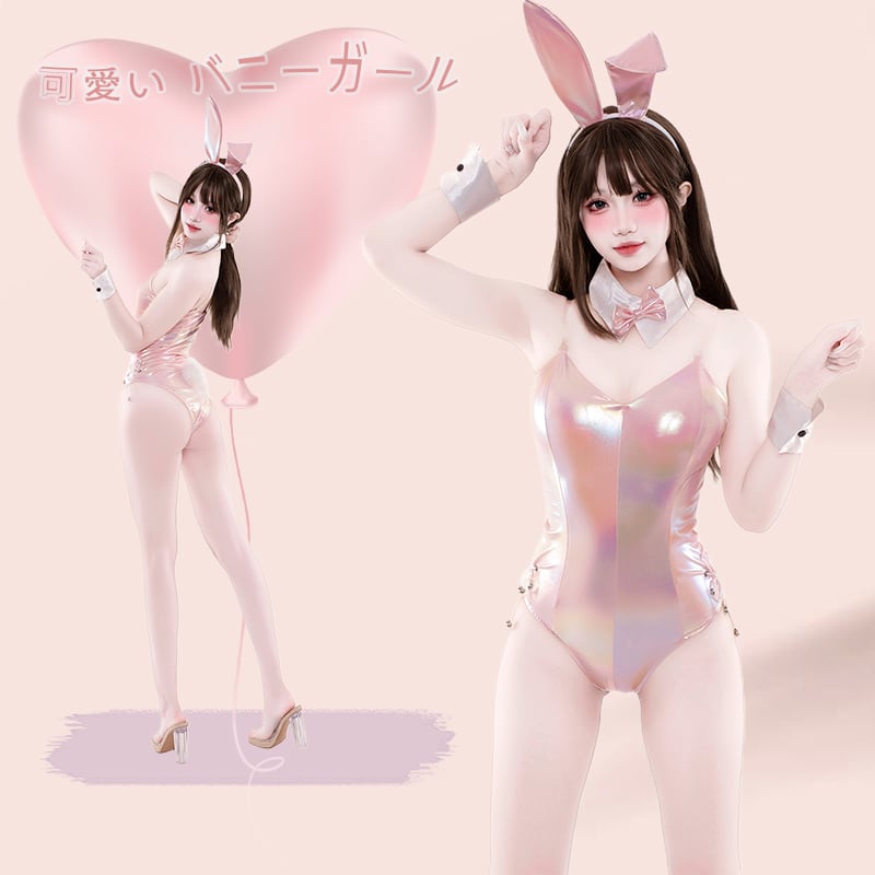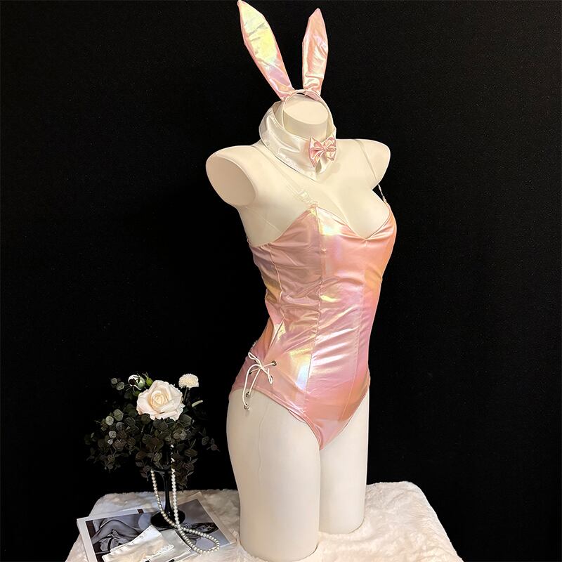■ツヤツヤのPUレザー生地で仕上げたキュートな小悪魔風バニーガールセクシーコスプレです。