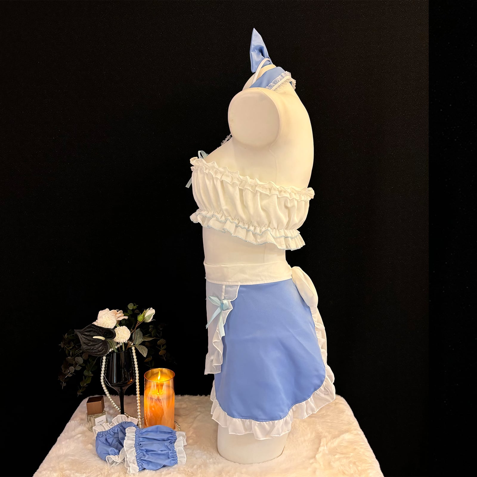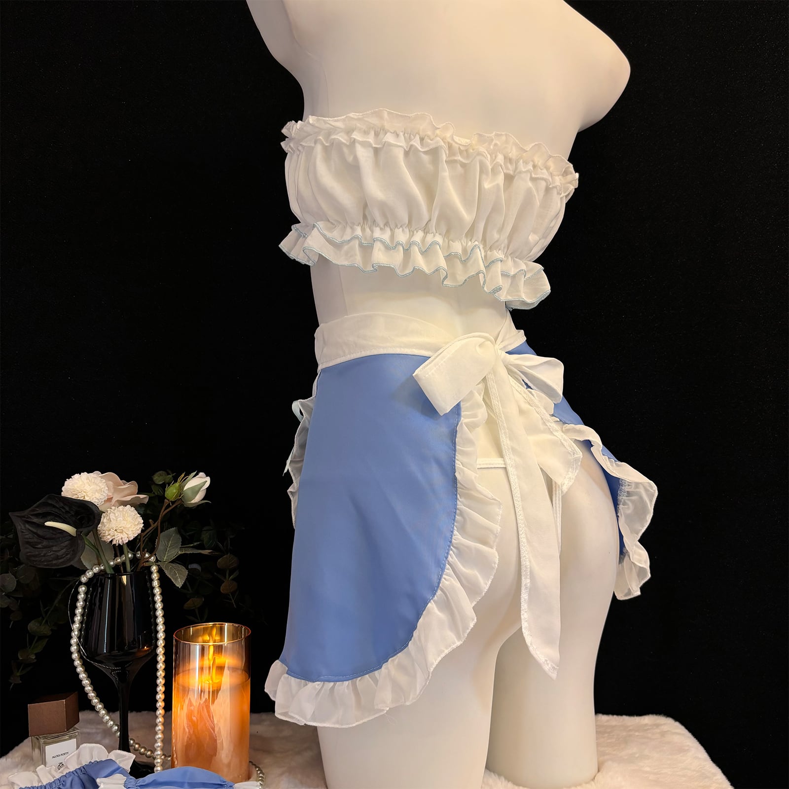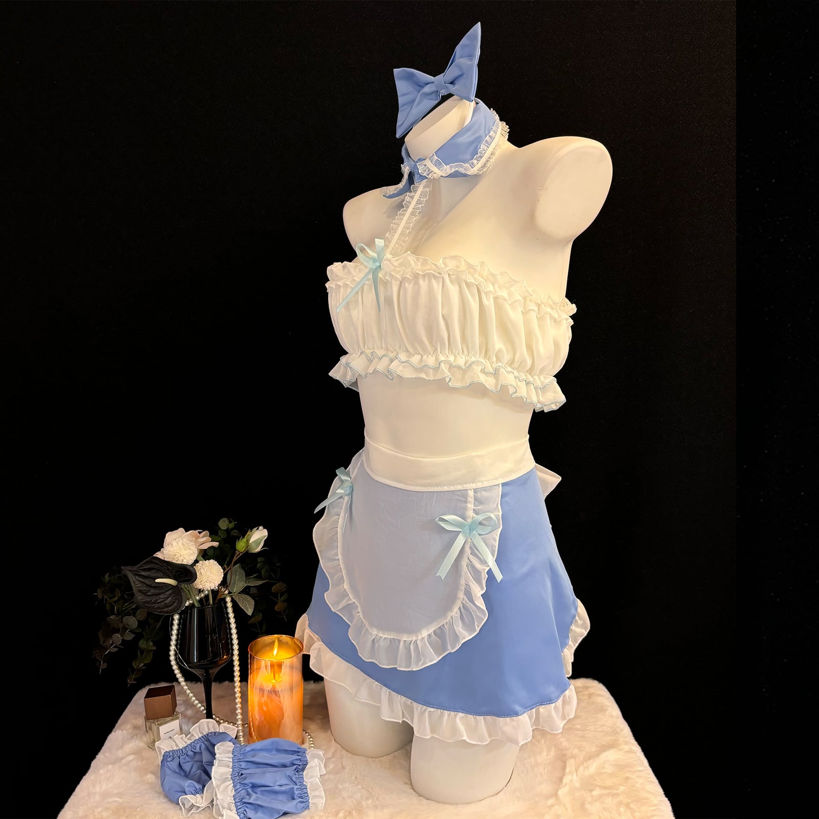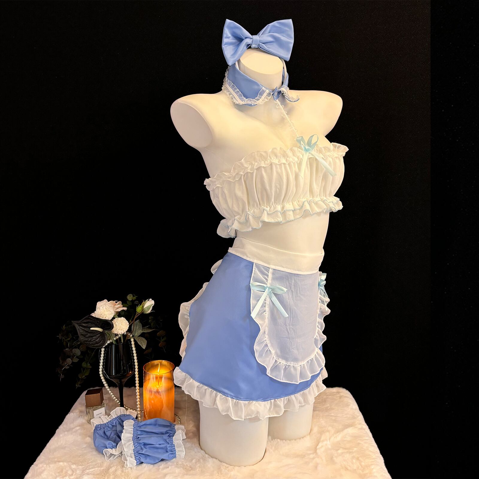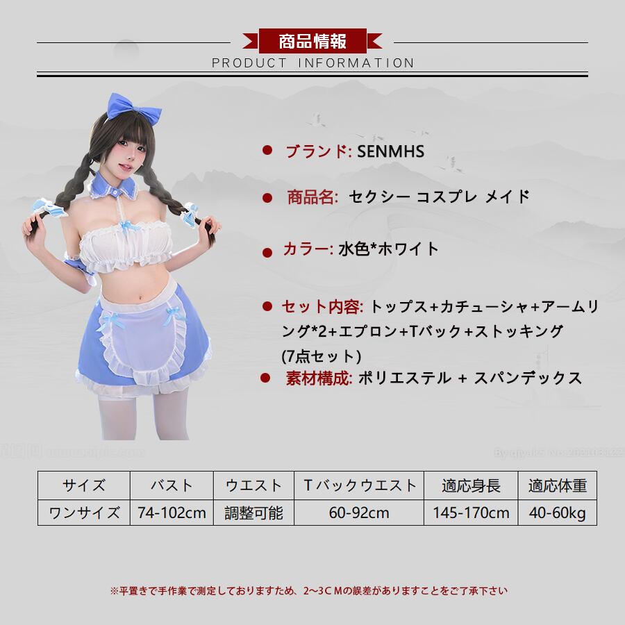 SENMHS メイド メイド服 セット コスプレ コスチューム 胸空き 穴あきエロ 誘惑 過激 下着 萌え フリルセクシー コス エプロン 可愛い 萌え ベビードール ランジェリー ホワイト ブルー レディース ワンサイズ6131