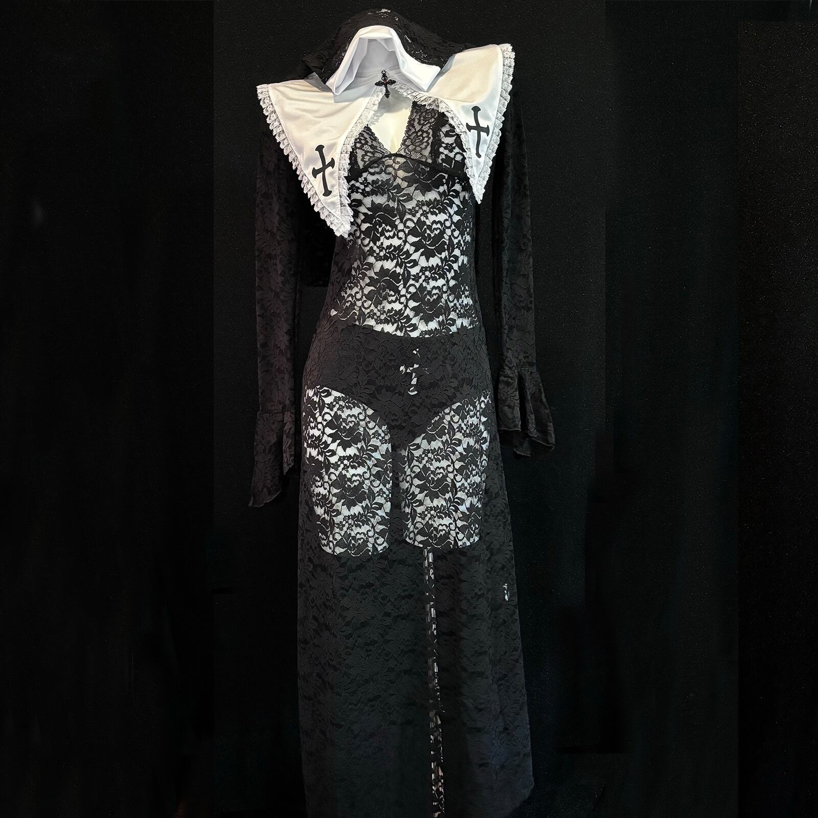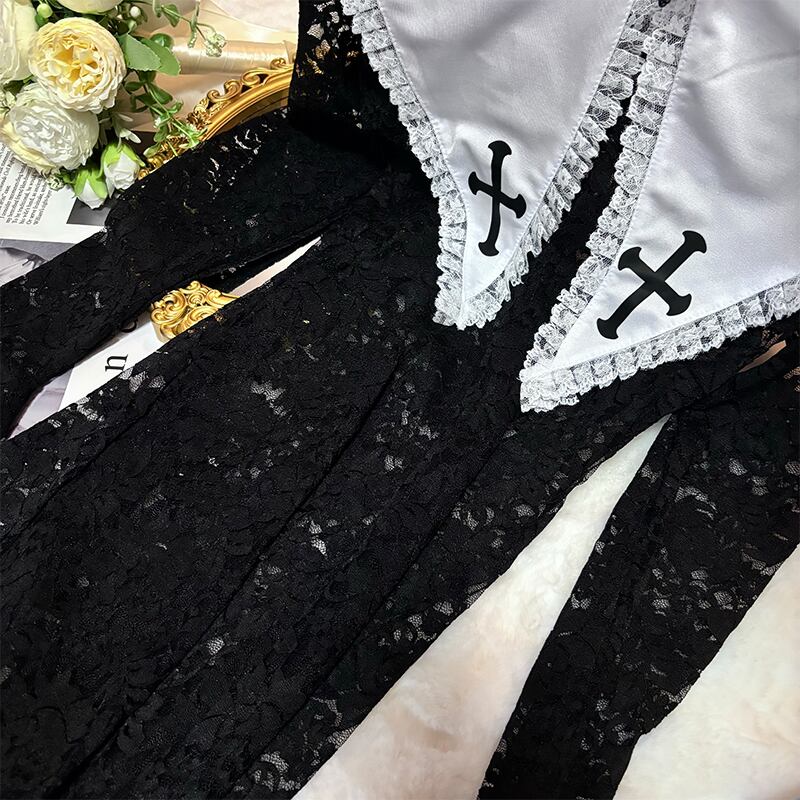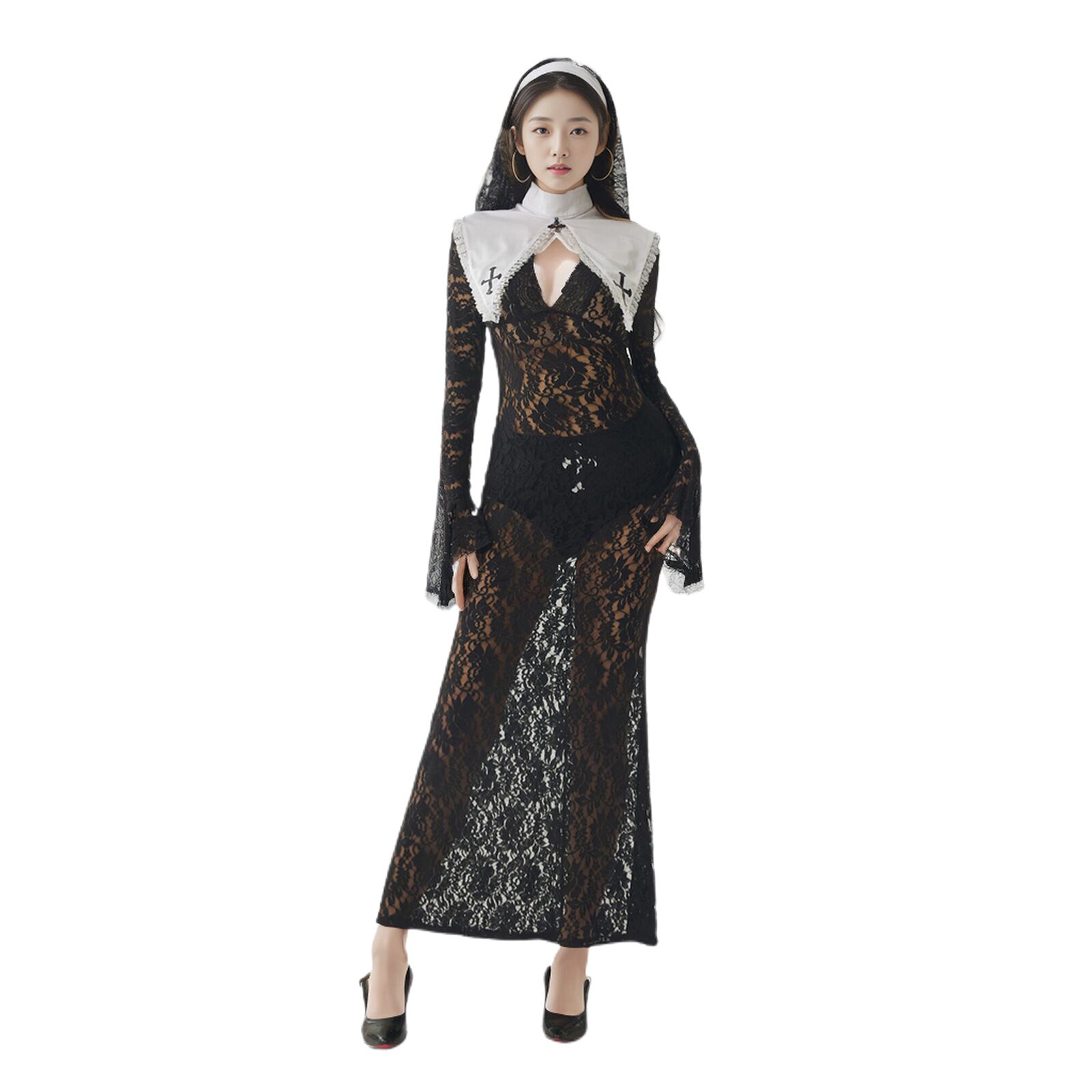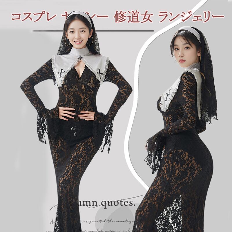 SENMHSシスター コスプレ セクシー 修道女 全身タイツ 十字架 コスチューム ランジェリー メイド 聖女 牧師 宣教師 教会 聖歌隊 かわいい ドレス ハロウィン ワンサイズ ブラック レディース6609