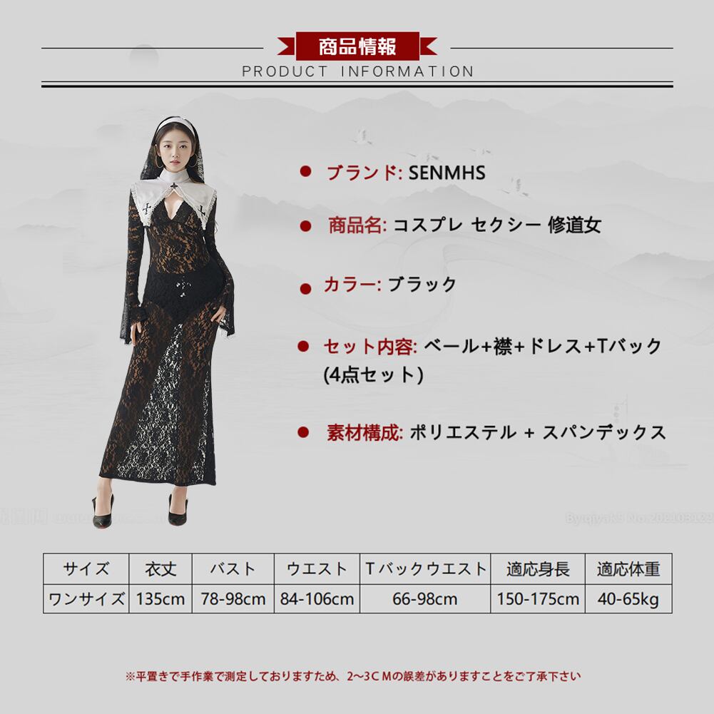■エレガントなデザイン:クラシックな修道女のスタイルに、繊細なレースと刺繍を施し、上品で魅力的な外観を実現しました。