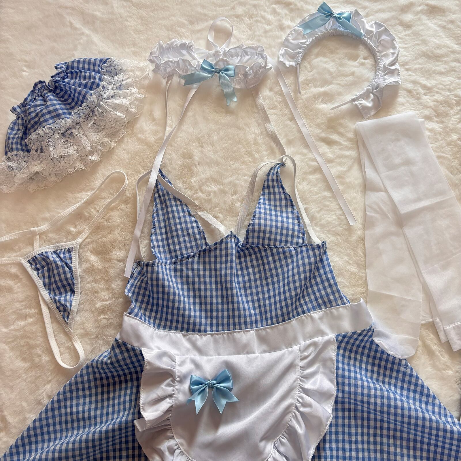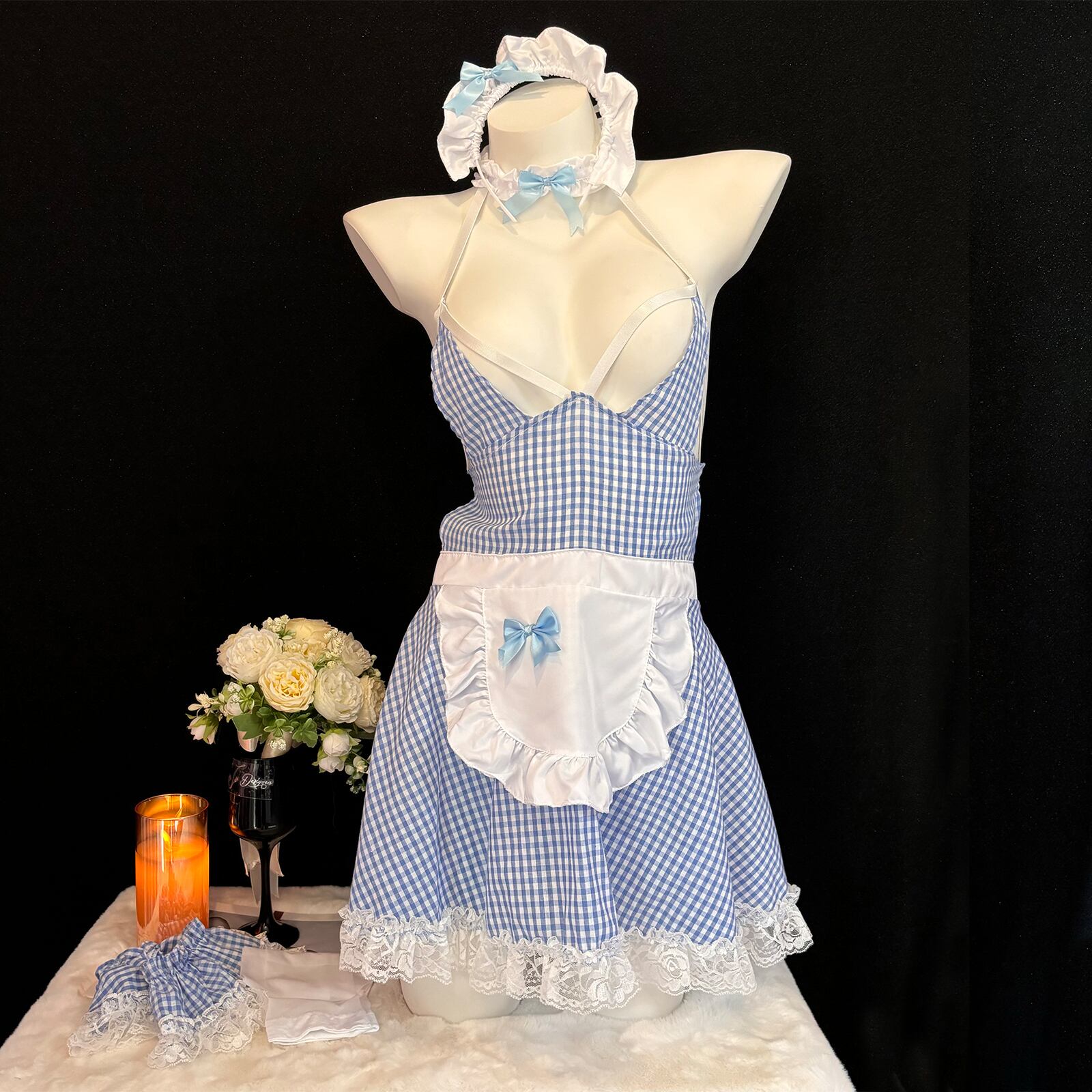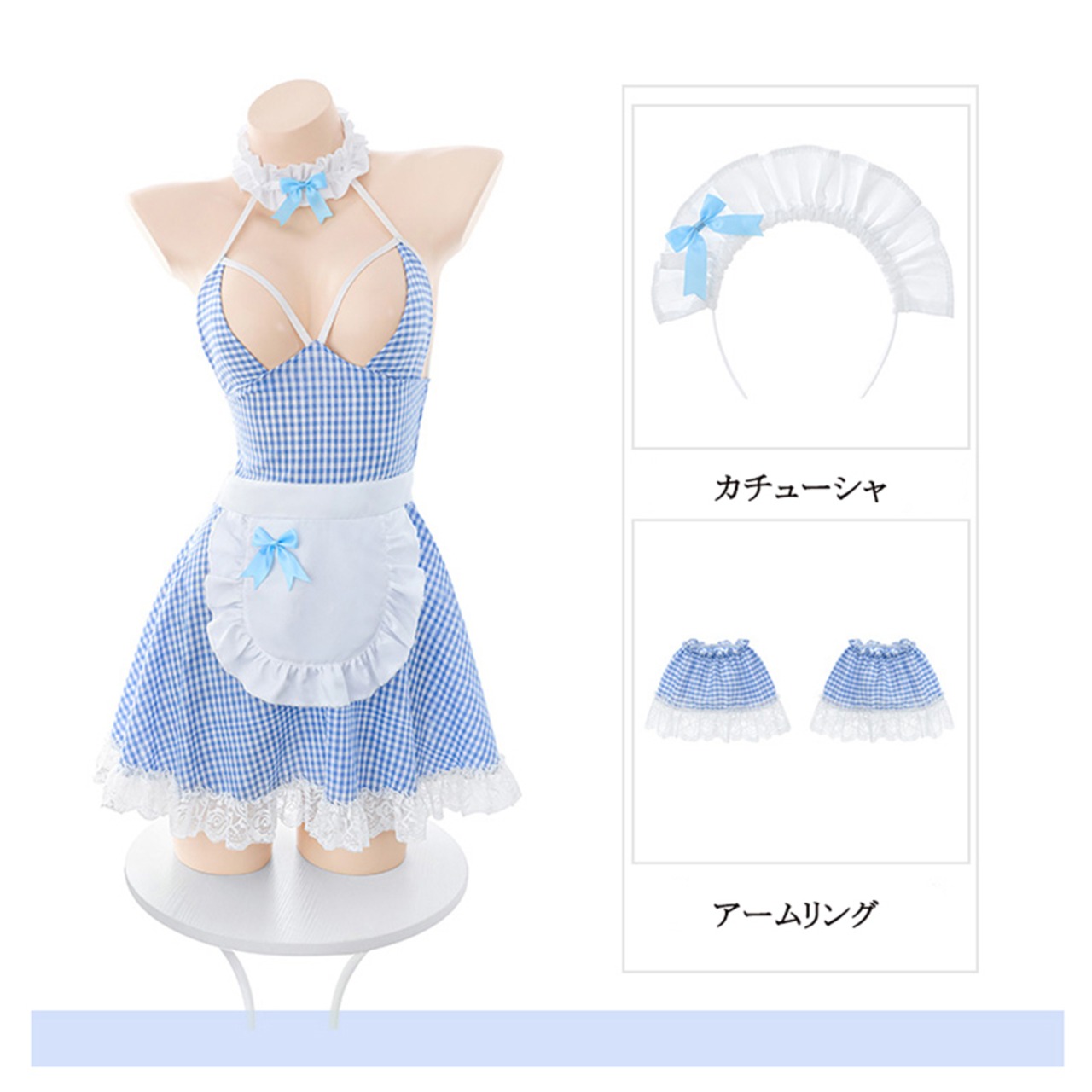 SENMHS メイド メイド服 セット コスプレ コスチューム 胸空き 穴あきエロ 誘惑 過激 下着 萌え フリルセクシー コス エプロン 可愛い 萌え ベビードール ランジェリー ホワイト ブルー レディース ワンサイズ6275