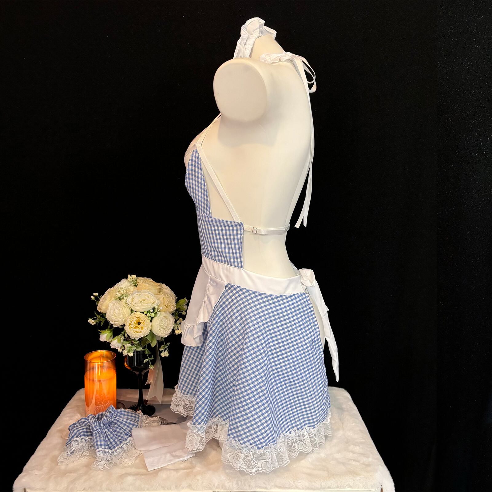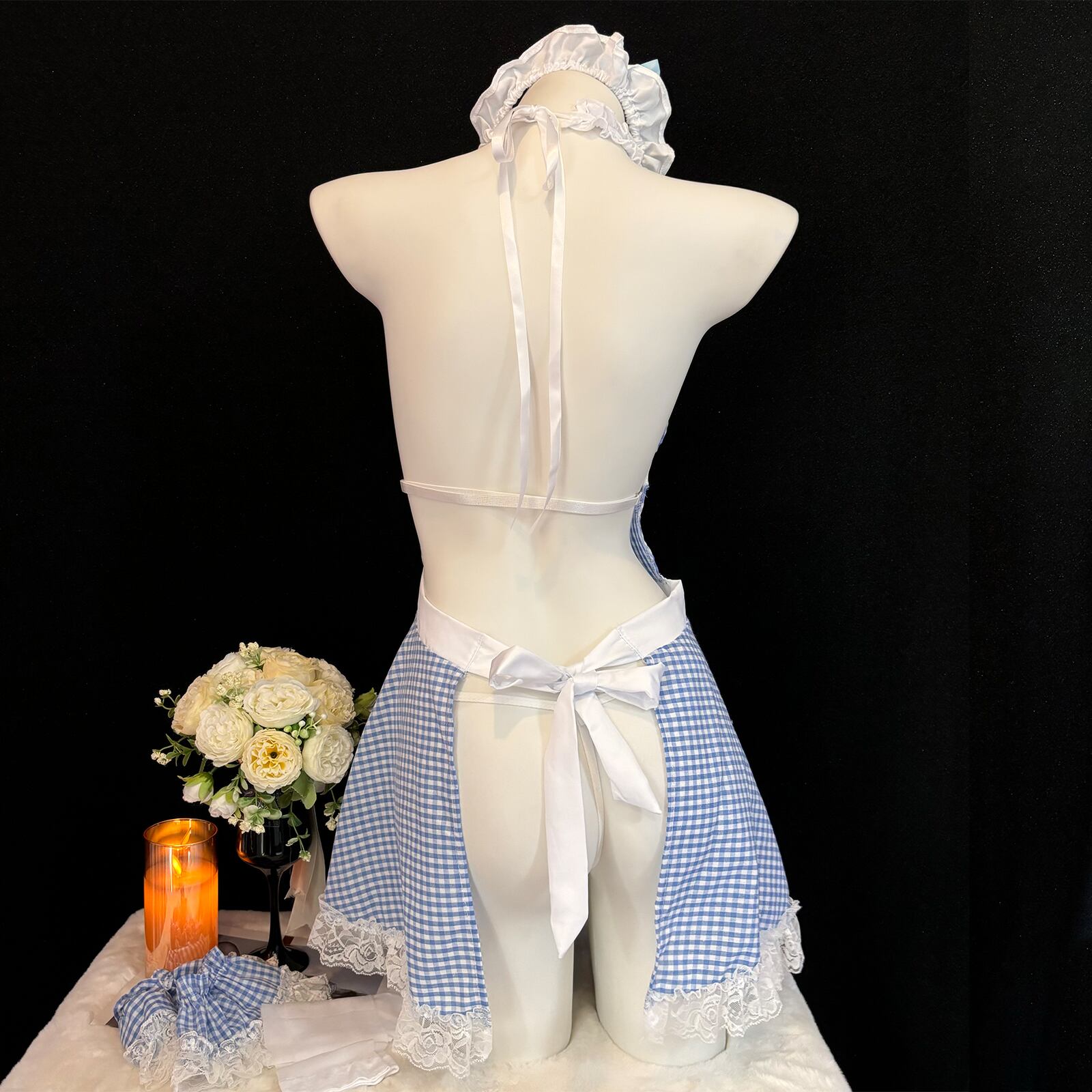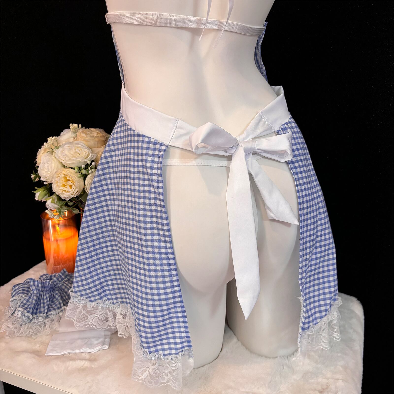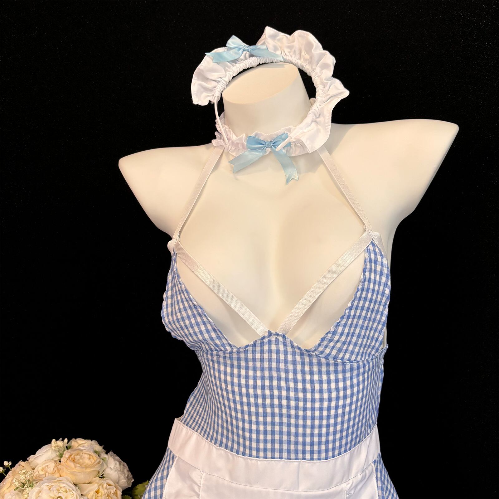 SENMHS メイド メイド服 セット コスプレ コスチューム 胸空き 穴あきエロ 誘惑 過激 下着 萌え フリルセクシー コス エプロン 可愛い 萌え ベビードール ランジェリー ホワイト ブルー レディース ワンサイズ6275