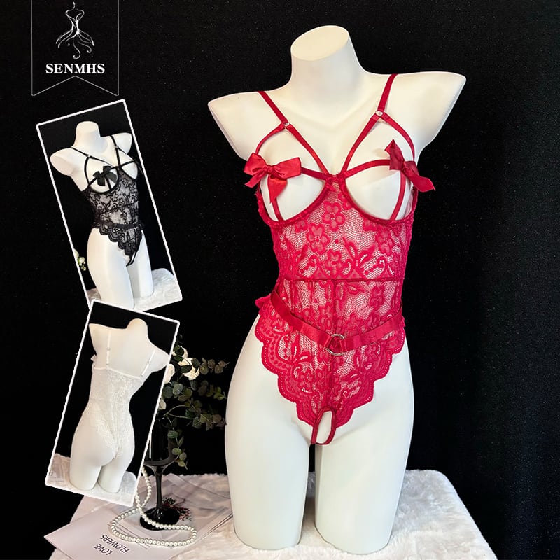 SENMHS セクシー ランジェリー コスプレ キャミソール レオタード ベビードール スケスケ シースルー エッチ エロ 下着 過激 貧乳 オープンクロッチ 胸空 ロリータ コスチューム レディース ブラック ホワイト レッドdme8625